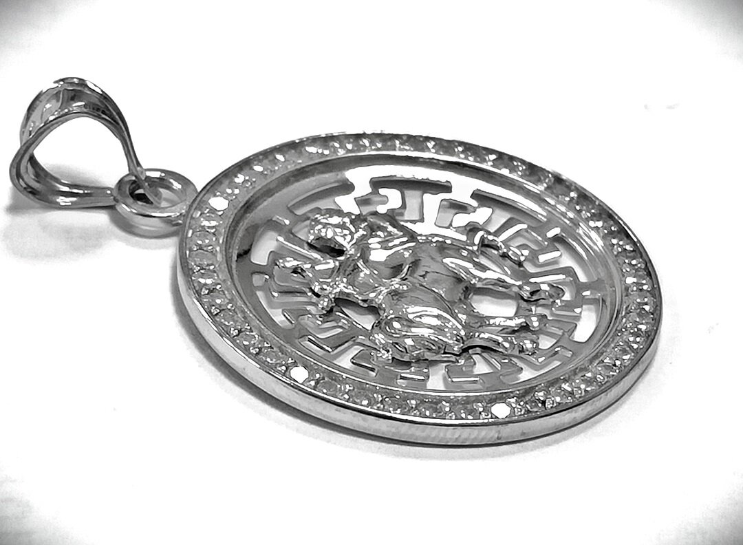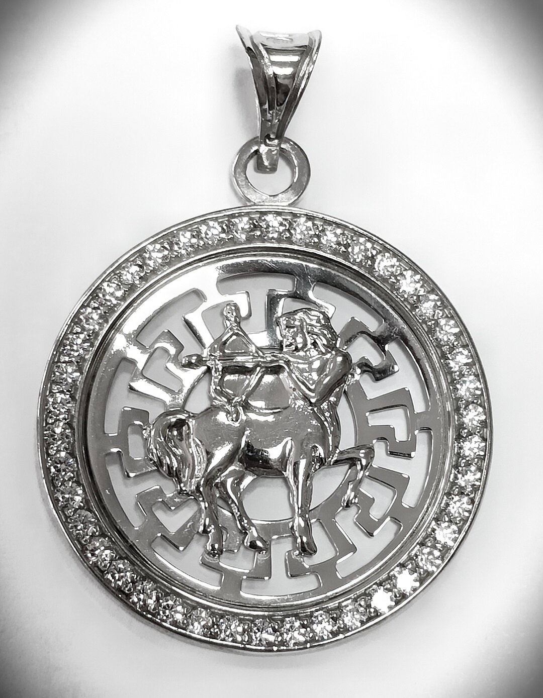 Подвеска имеет круглую форму вставки из фианита, что придает ей особый шарм и блеск. Вставка выполнена в форме знака зодиака Стрелец, что делает украшение уникальным и стильным.