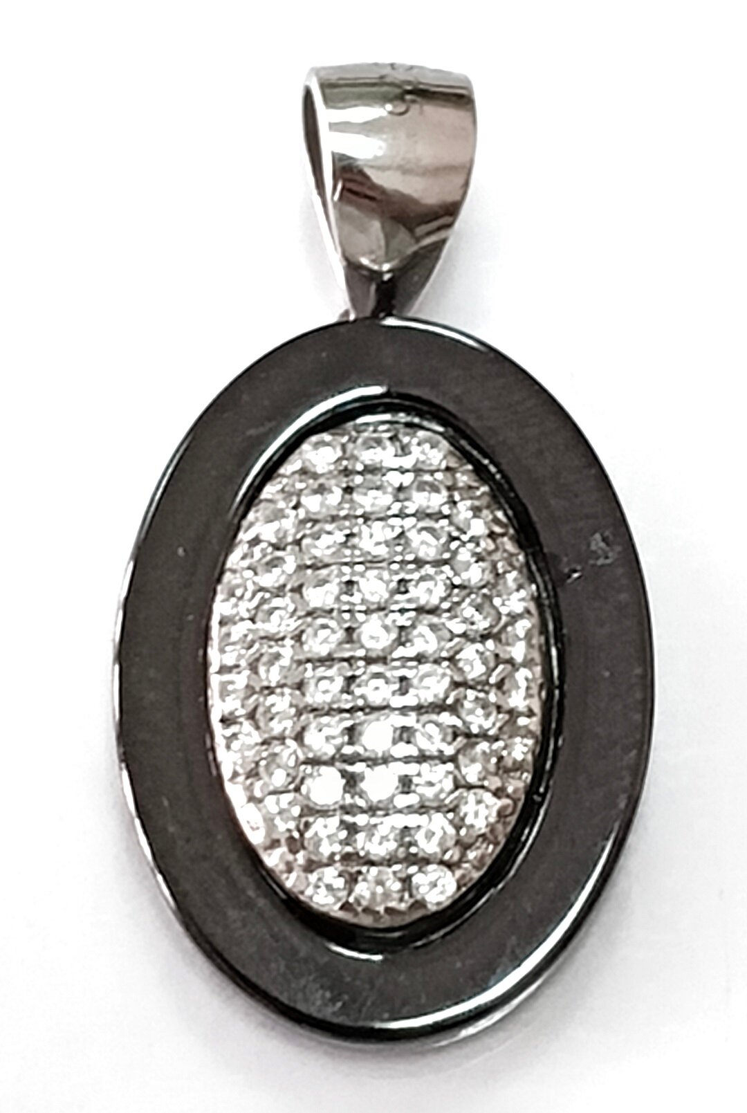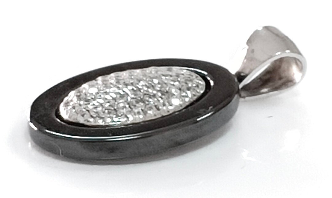 Украшение украшено черной керамикой и фианитами, что придает ему особый шарм и стиль. Фианиты - это искусственные камни, которые обладают ярким блеском и долговечностью, а черная керамика добавляет изделию элегантности и загадочности.