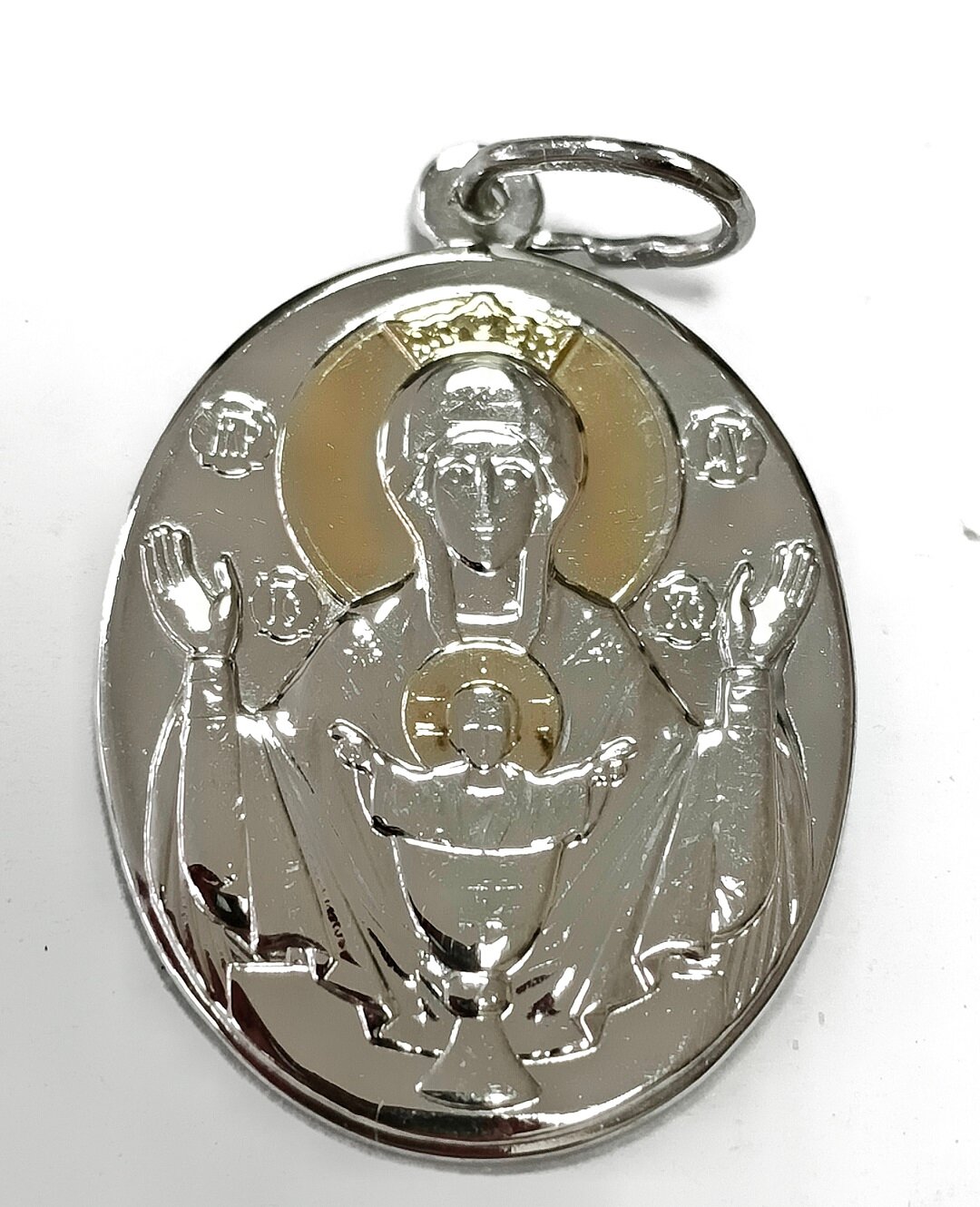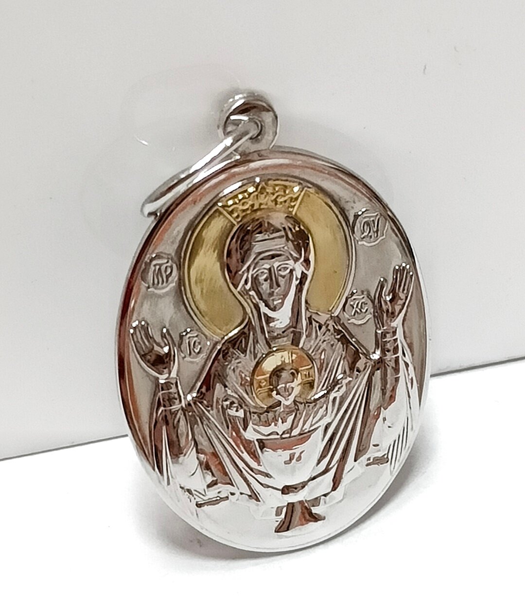 Подвеска Эстерелла – это стильное и изящное украшение, которое станет отличным дополнением к вашему образу. Изготовленная из серебра 925 пробы, подвеска выполнена в виде иконки с отделкой родированием и золочением, что придает ей особый блеск и шик.