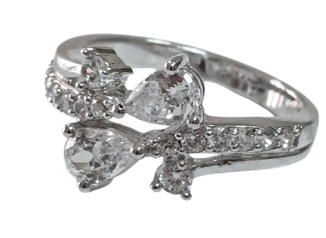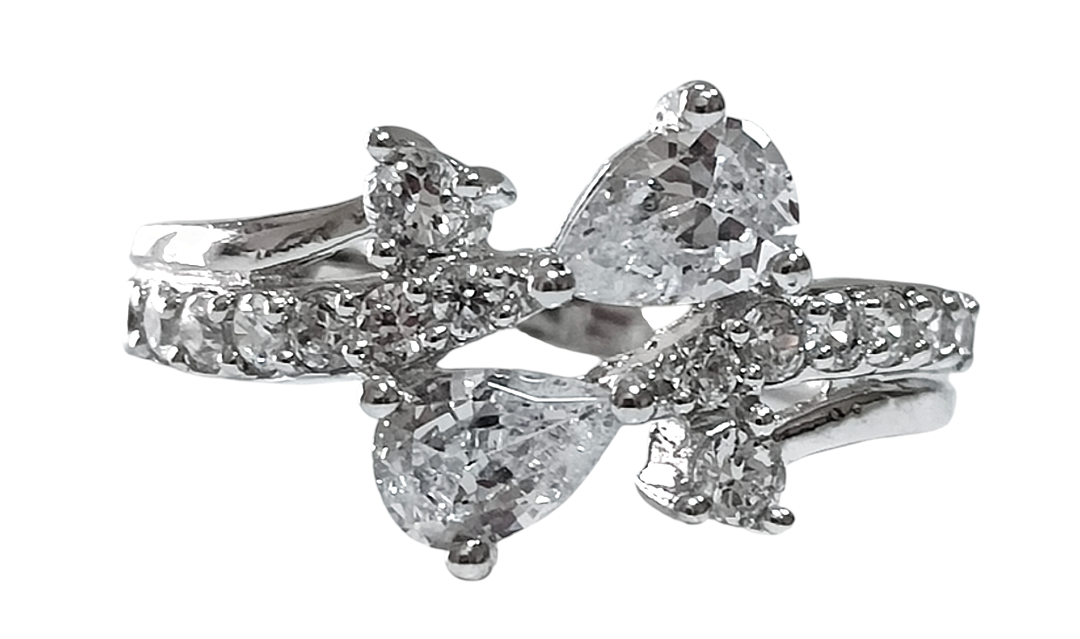 Вставка из фианита придает кольцу особый блеск и сияние. Капля и круг - две формы вставок, которые гармонично сочетаются между собой и создают уникальный дизайн.