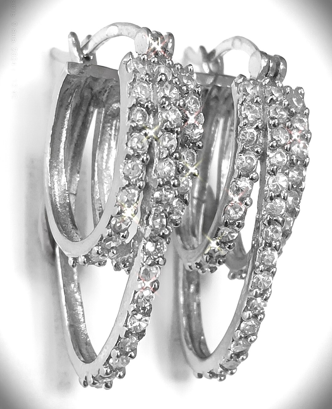 Серьги выполнены в классическом стиле и украшены фианитами, что придает им особый шарм и блеск. Размер украшения составляет 2,5 см, что делает его заметным, но не вызывающим.