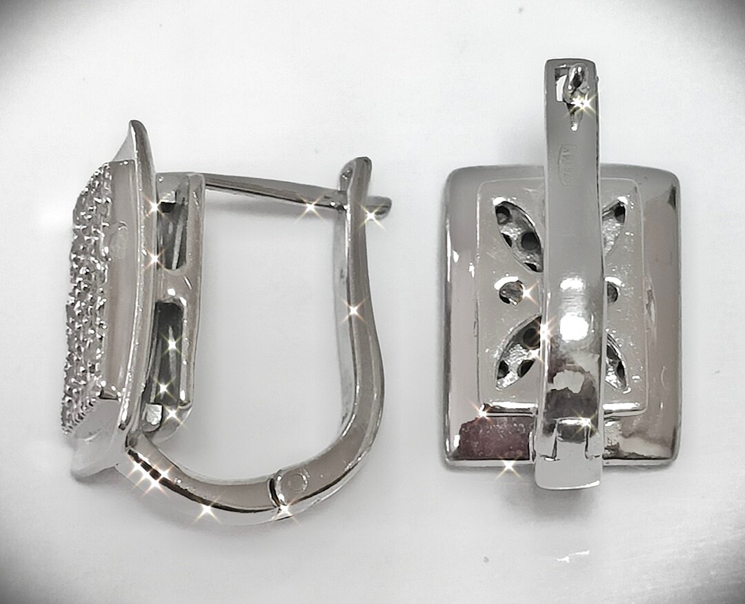 Вставка из фианита квадратной формы придает серьгам геометрический акцент и делает их еще более привлекательными. Средний вес изделия составляет 11.02 грамма, что делает их комфортными для ношения на протяжении всего дня.