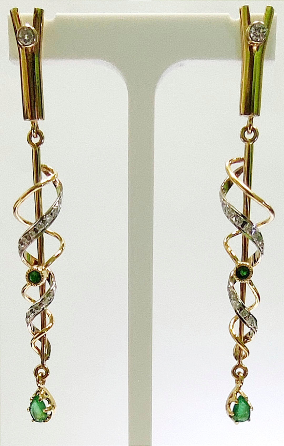 Серьги ручной работы в единственном экземпляре с изумрудами и бриллиантами. Изготовлены из золота 750 пробы.