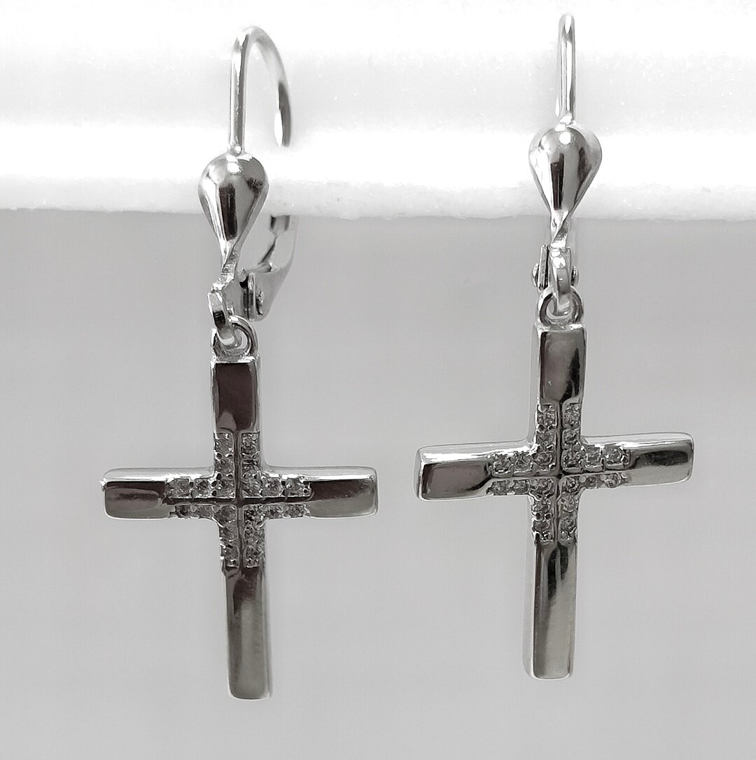 Особенностью этих сережек является их дизайн. Они украшены подвесками в виде крестов, что придает им особый шарм и уникальность.
