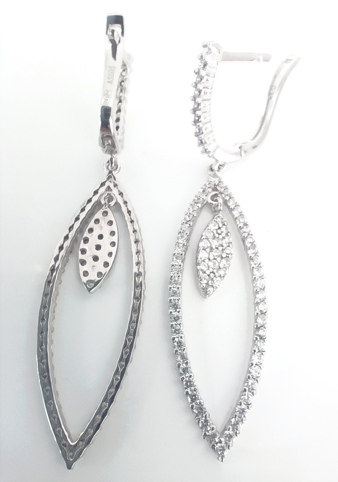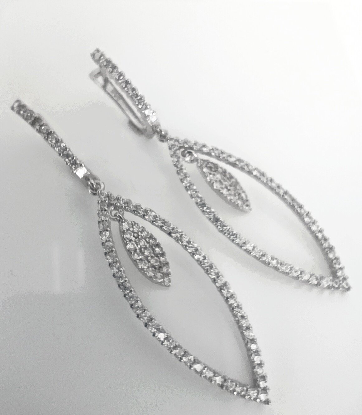 Серьги Эстерелла с подвесками и фианитами выполнены в коллекции "Сияние", которая сочетает в себе геометрический дизайн и серебристый цвет металла.