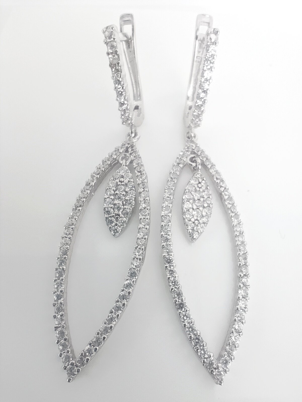 Серьги Эстерелла с подвесками и фианитами представляют собой изысканное ювелирное изделие, выполненное из серебра 925 пробы. Благодаря родированию, поверхность металла приобретает дополнительный блеск и защиту от царапин и потускнения.