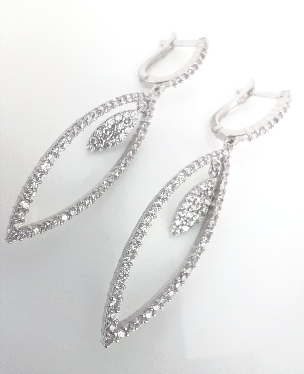 Серьги украшены подвесками с фианитами, которые являются искусственным аналогом бриллианта. Фианиты обладают рядом преимуществ: они чисты, прозрачны и играют на солнце, позволяя создавать настоящие ювелирные шедевры. Цвет вставок - белый, форма вставки - круг.