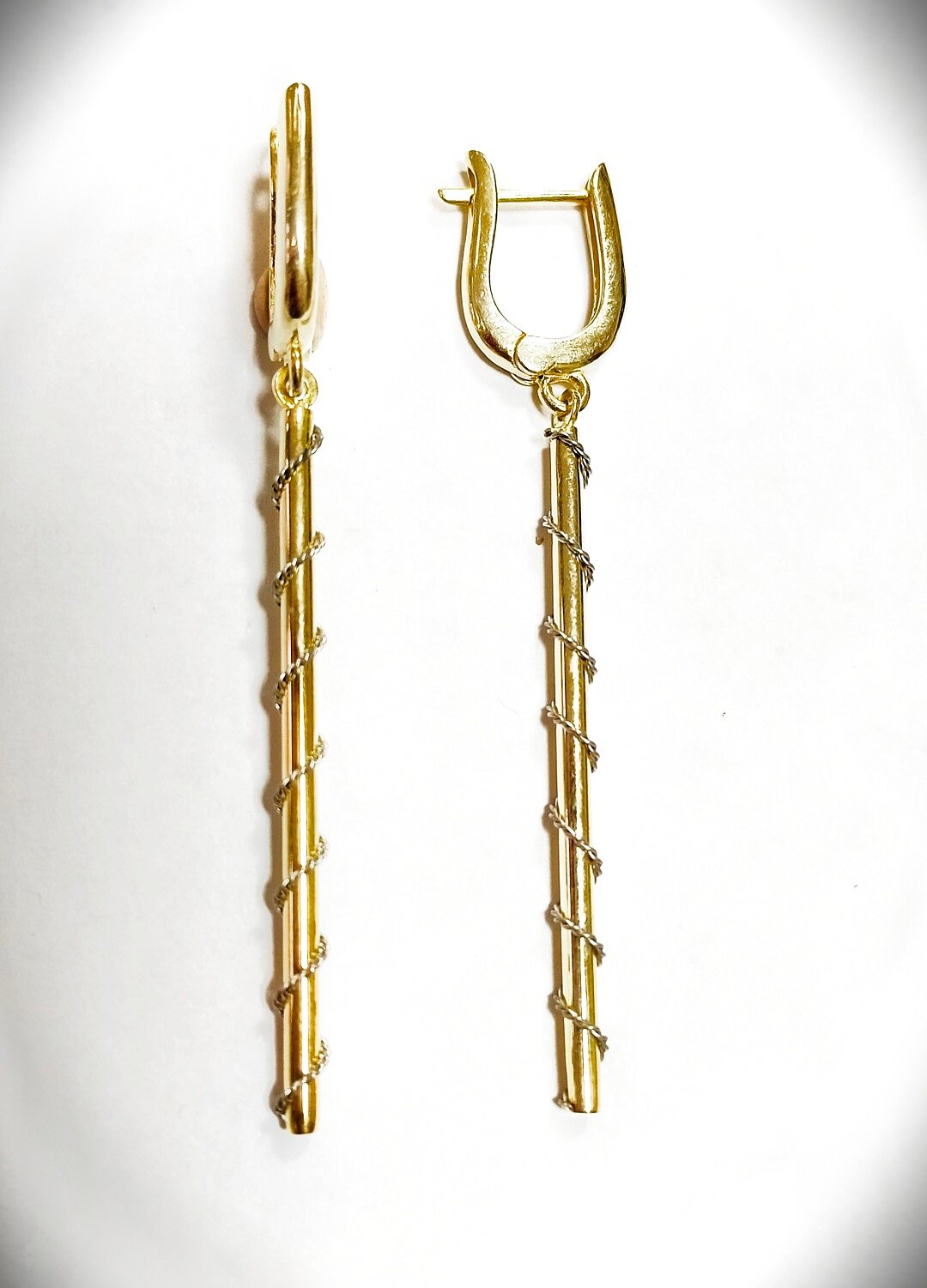 Серьги выполнены в виде модели с подвесками, что придает им особый шарм и элегантность. Отделка изделия выполнена в технике золочения, что придает ему дополнительный блеск и шик.