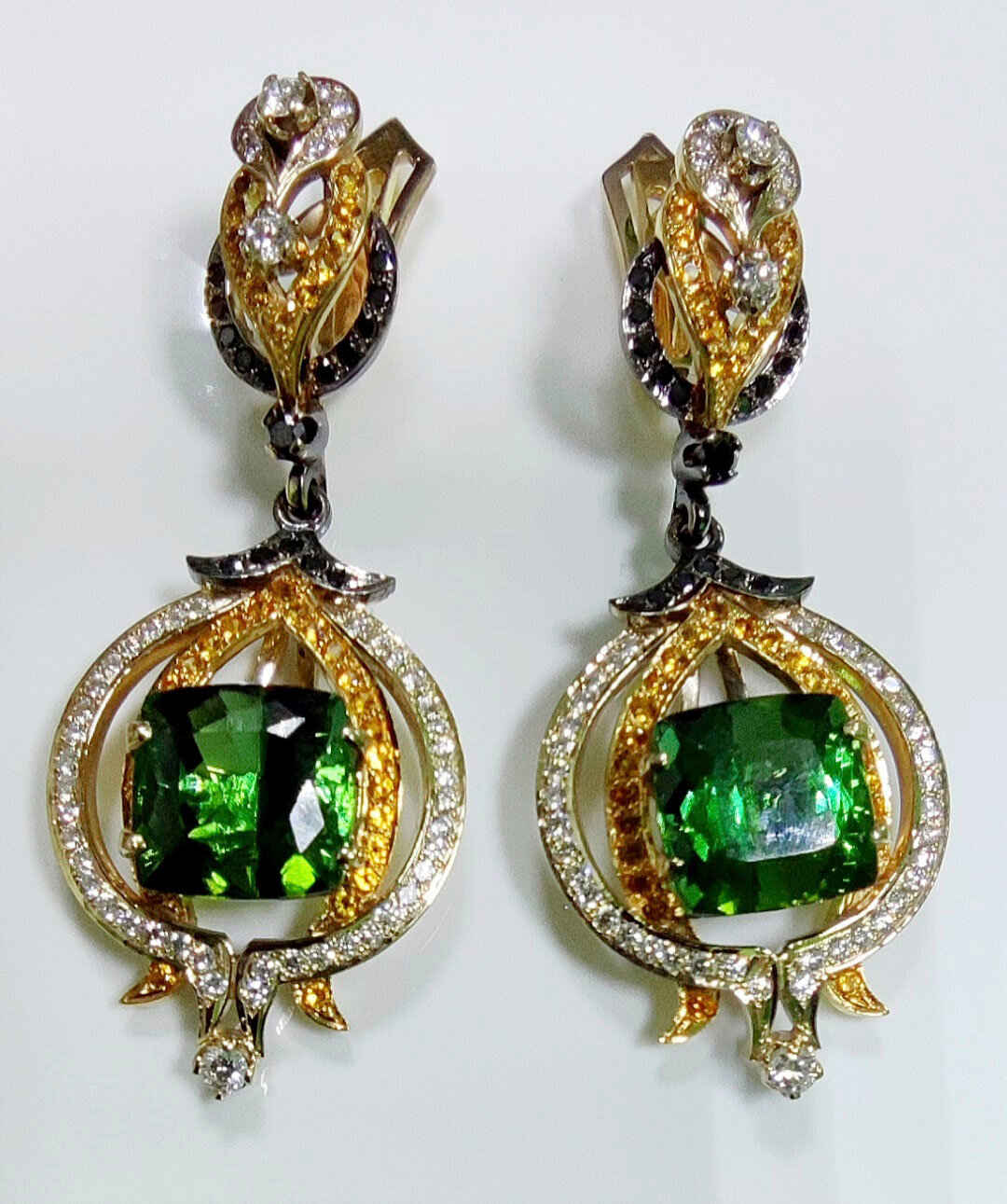 одни из самых дорогих в линейке турмалинов. Белые и чёрные бриллианты, жёлтые сапфиры.