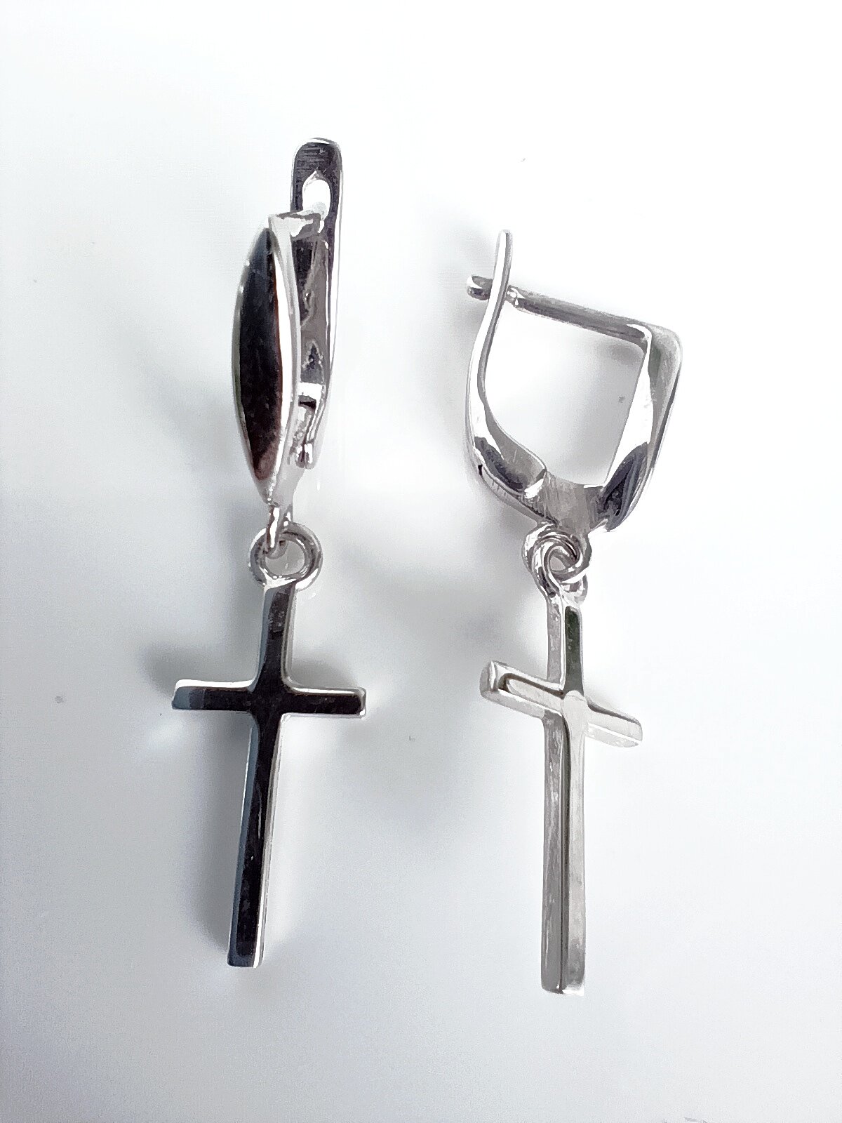 Модель с подвесками и крестами на сережках станет ярким акцентом в образе и подчеркнет индивидуальность.