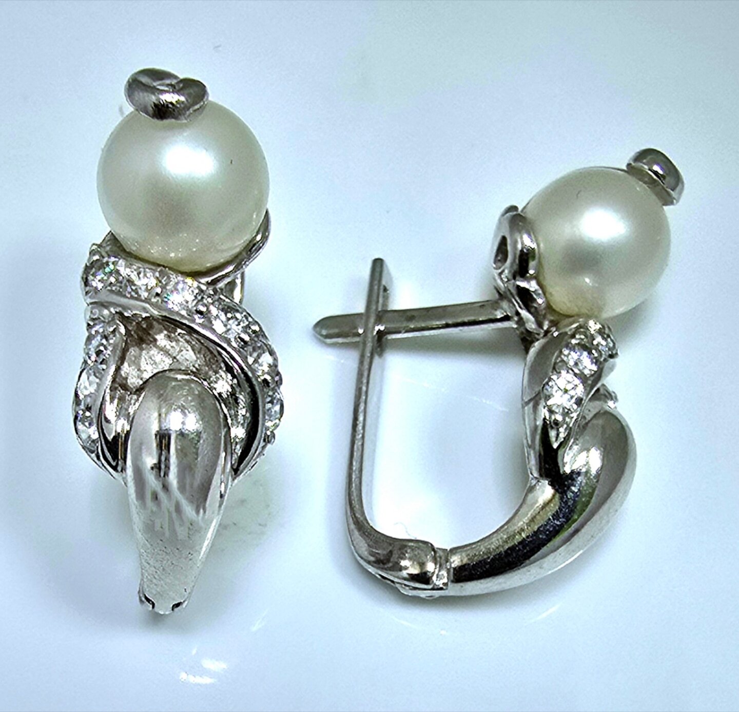 Жемчуг и фианит, использованные в дизайне, придают серьгам неповторимый шарм и элегантность. Эти камни добавляют изысканности и роскоши, делая украшение по-настоящему уникальным.