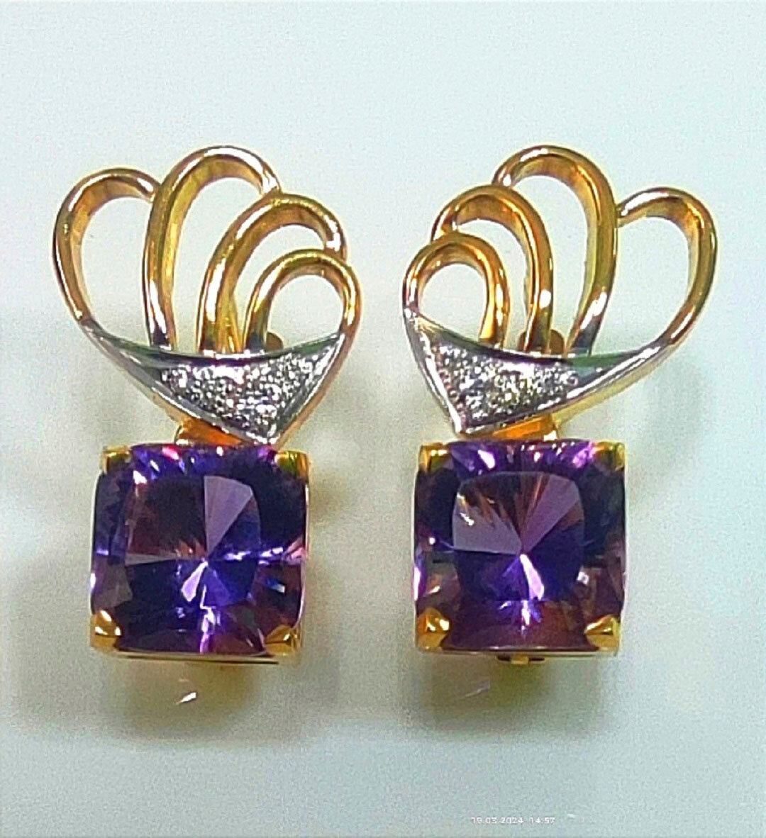 Серьги Эстерелла золото 750, бриллианты, аметисты