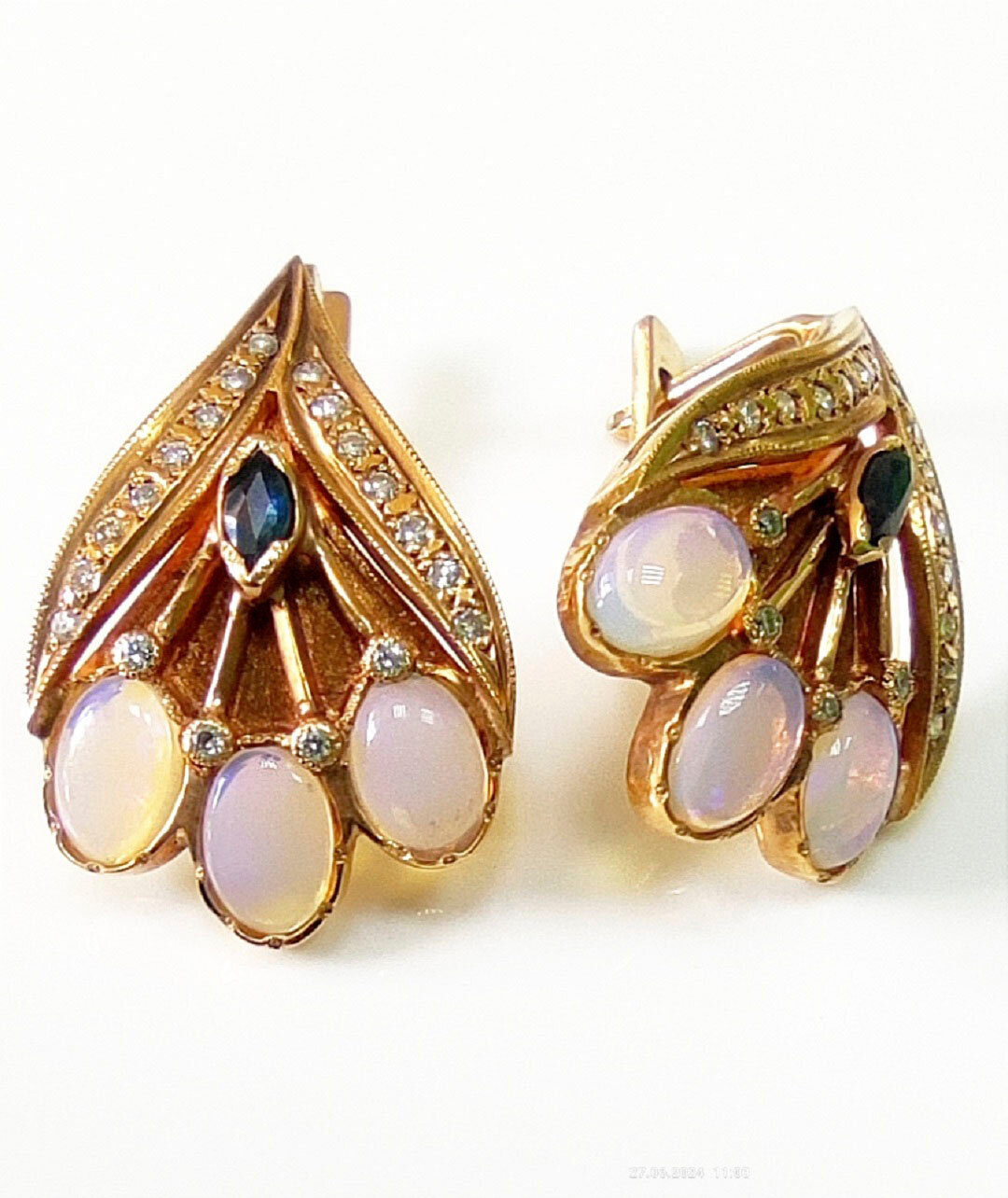 Серьги Эстерелла золото 750, бриллианты, сапфиры, опалы