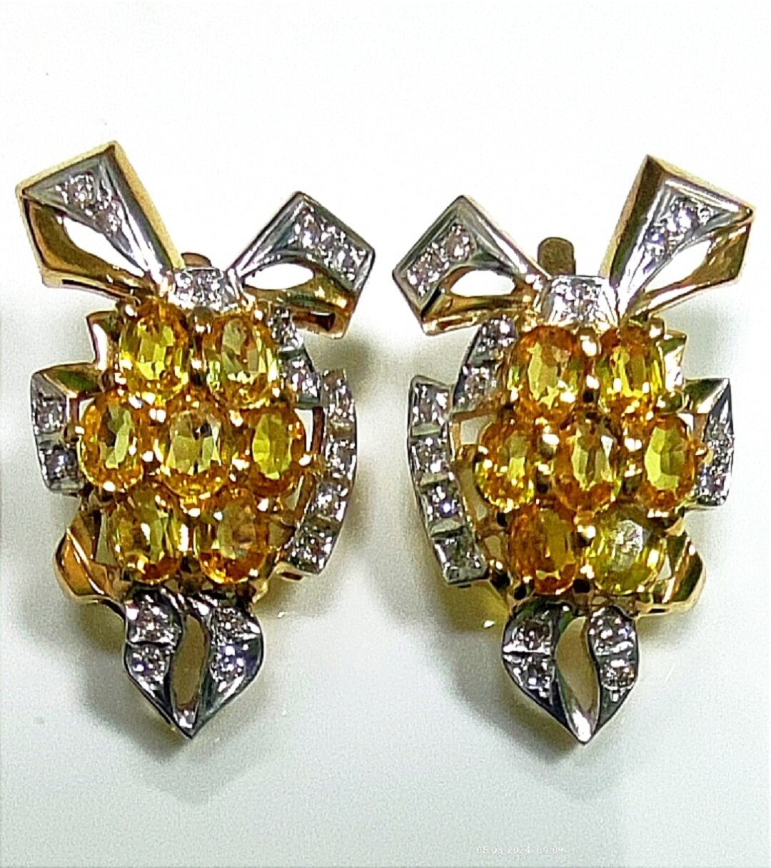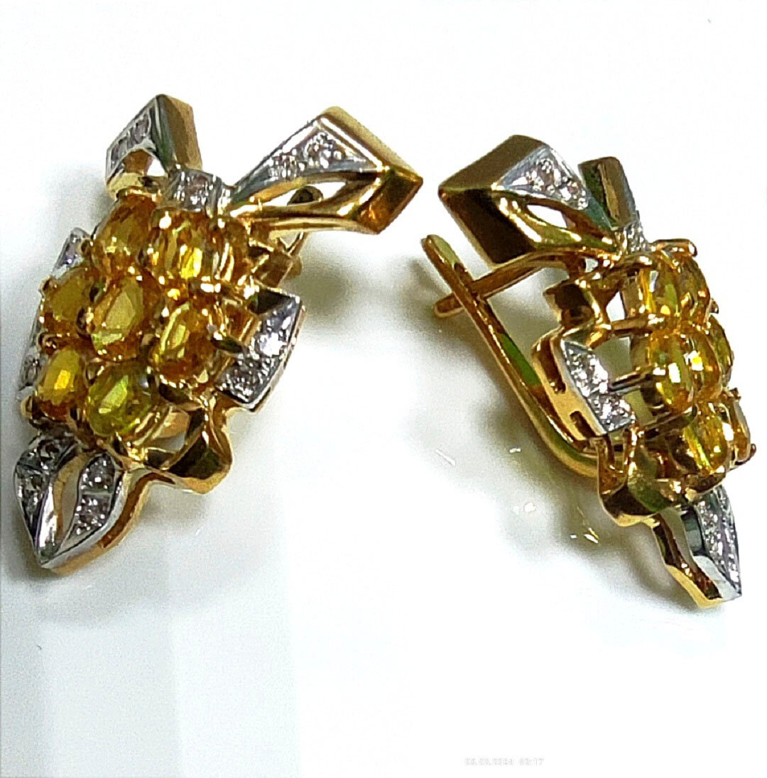 Серьги Эстерелла золото 750, бриллианты, жёлтые сапфиры