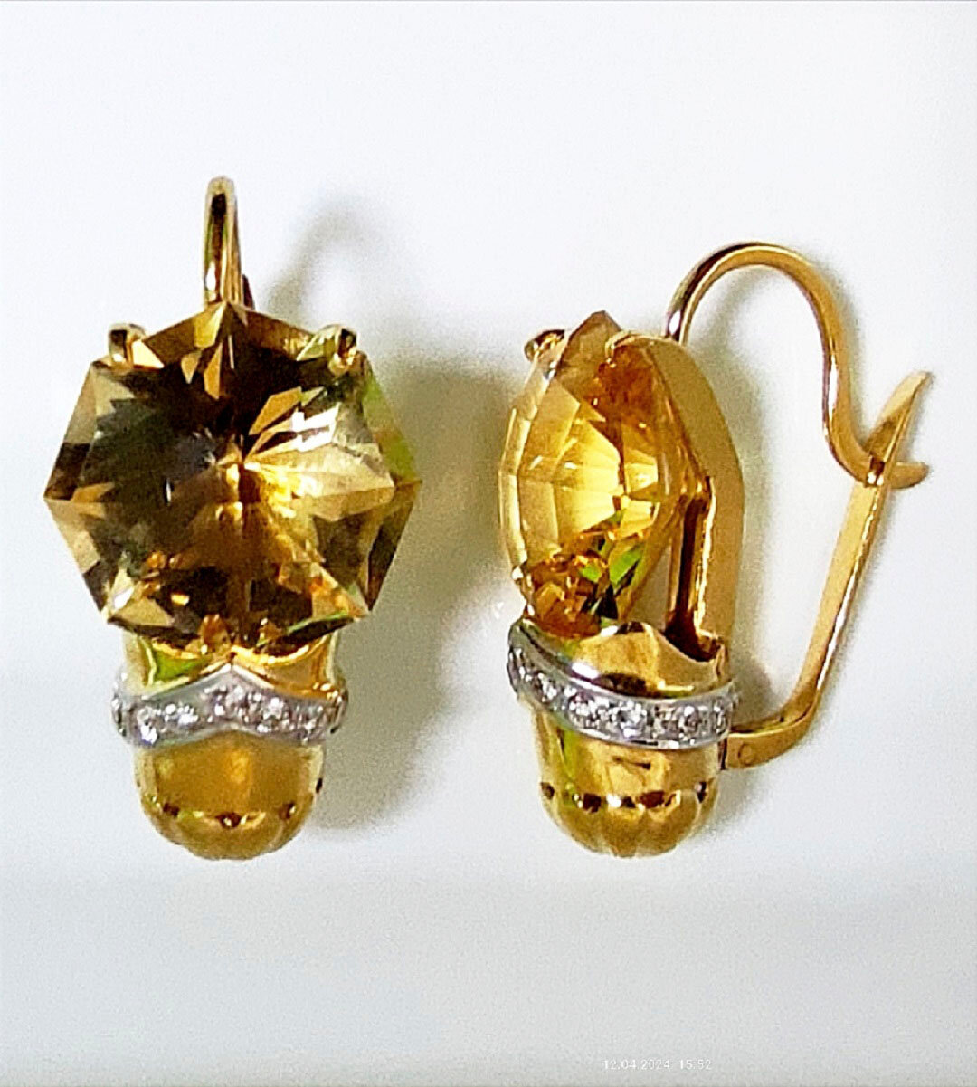 Серьги Эстерелла золото 750, цитрины, бриллианты