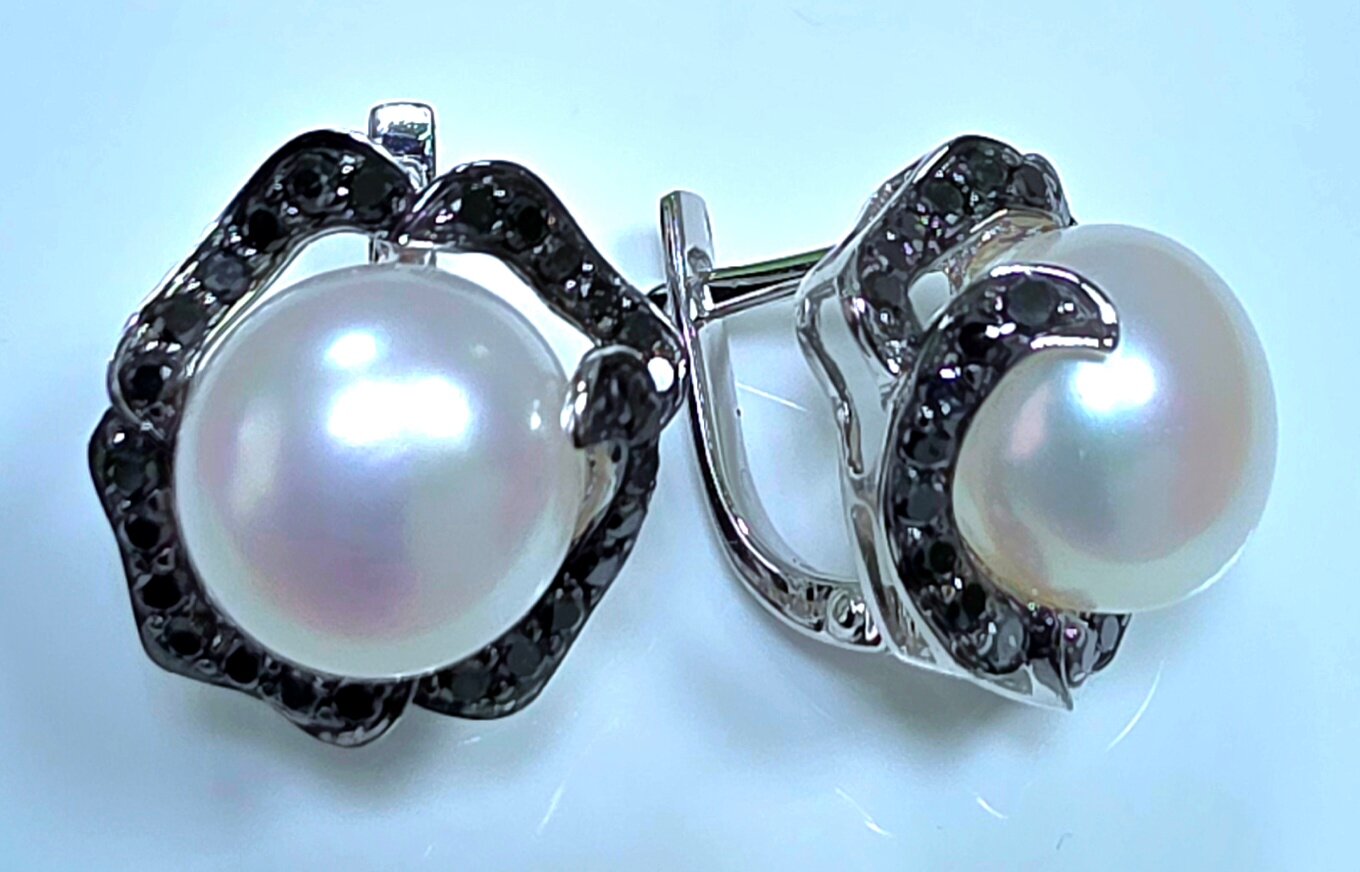 Серьги Эстерелла золото585, жемчуг, чёрные бриллианты - это изысканное украшение, которое подчеркнет вашу индивидуальность и добавит шарма вашему образу.