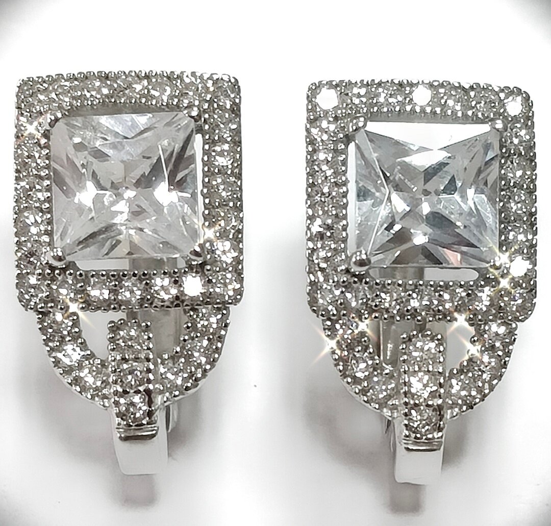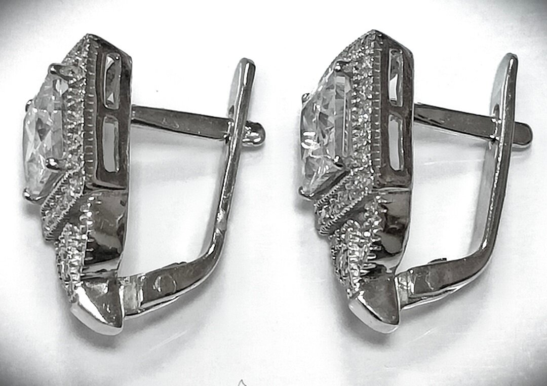 Вставка из фианита квадратной формы придает серьгам особый шарм и блеск. Средний вес изделия составляет 4.55 грамма, что делает его комфортным для ношения на протяжении всего дня.