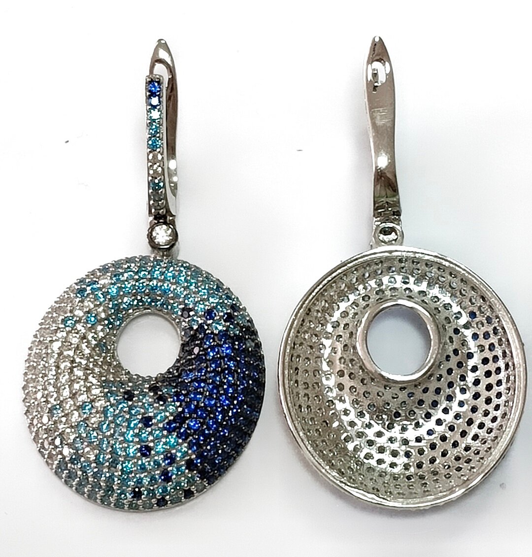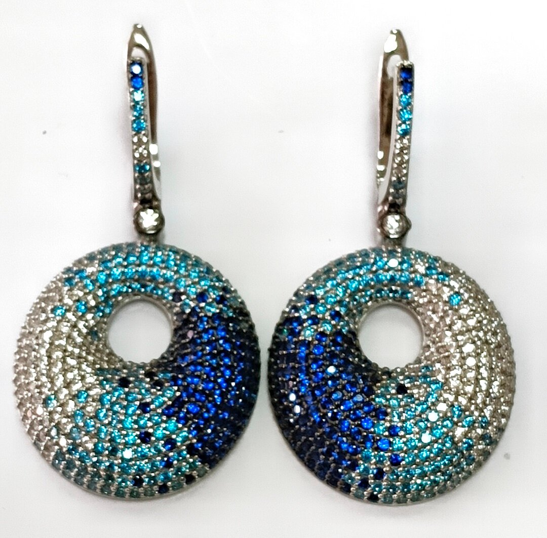 Серьги выполнены из серебра 925 пробы, что гарантирует высокое качество и долговечность изделия. Отделка серег родированием придает им блеск и защищает от царапин и потертостей.