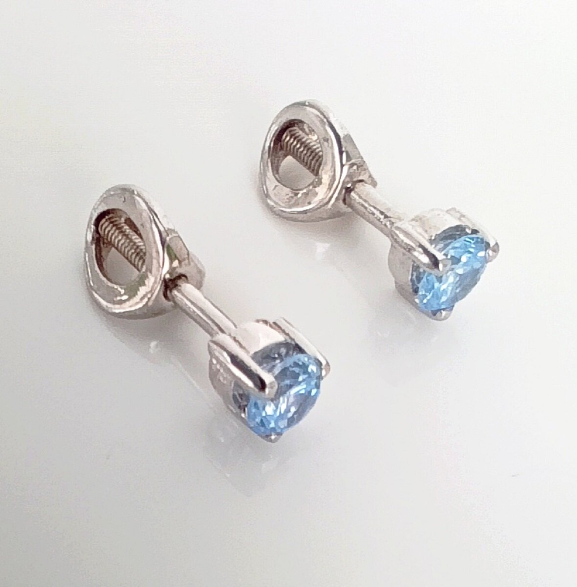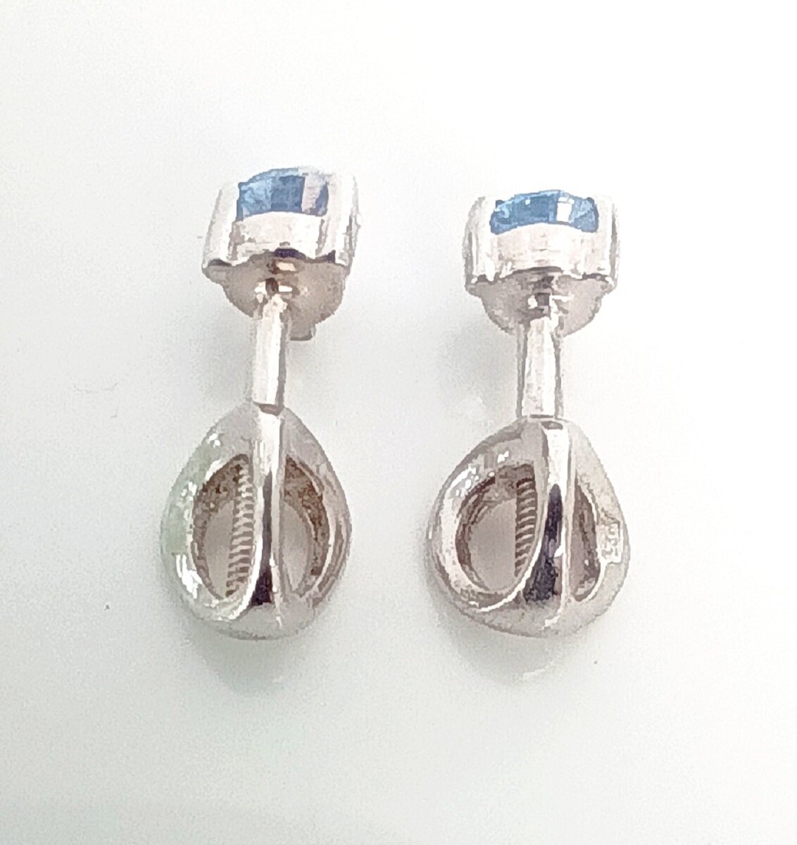 Серьги выполнены в виде геометрических пусет с фианитами голубого цвета. Фианит – это искусственный аналог бриллианта, который по своему внешнему виду не уступает драгоценному камню. Он прозрачен, чист и играет на солнце, создавая настоящие ювелирные шедевры.