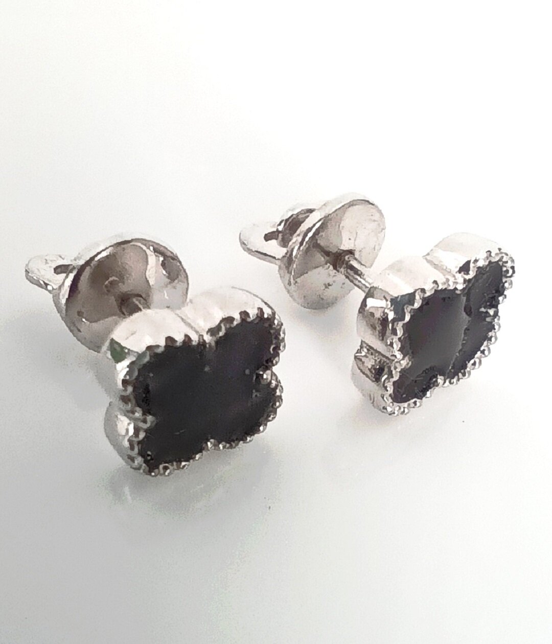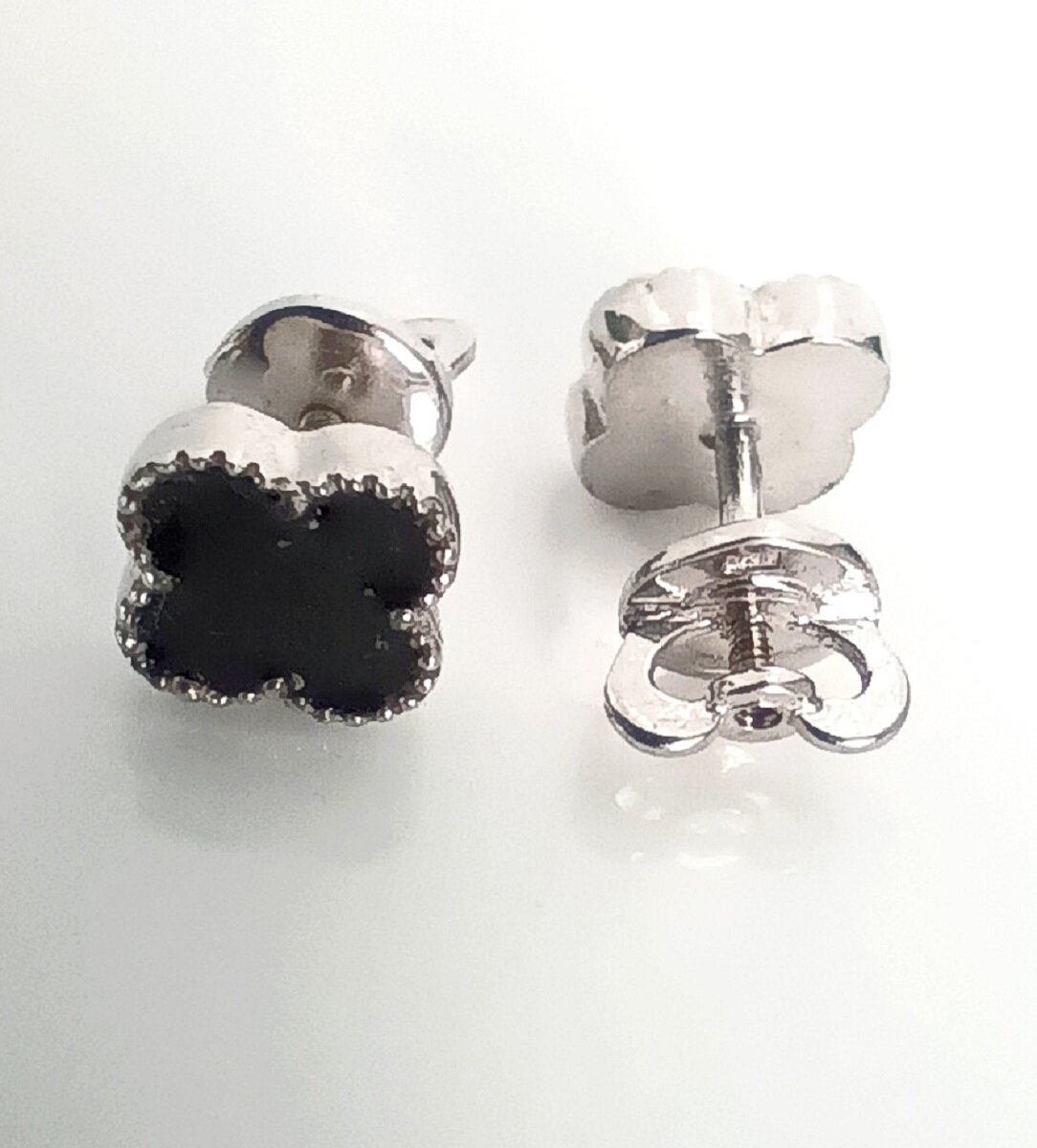 Вставка из черной эмали добавляет изысканности и утонченности дизайну. Форма вставки в виде клевера символизирует удачу и благополучие, а также подчеркивает тематику цветов и листьев.