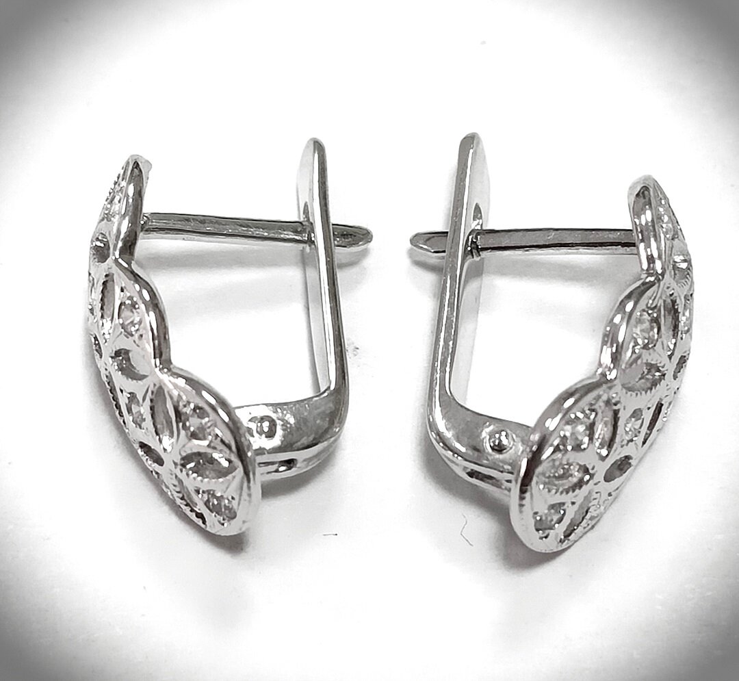Серьги украшены вставками из фианита круглой формы, что придает изделию особый шарм и блеск.
