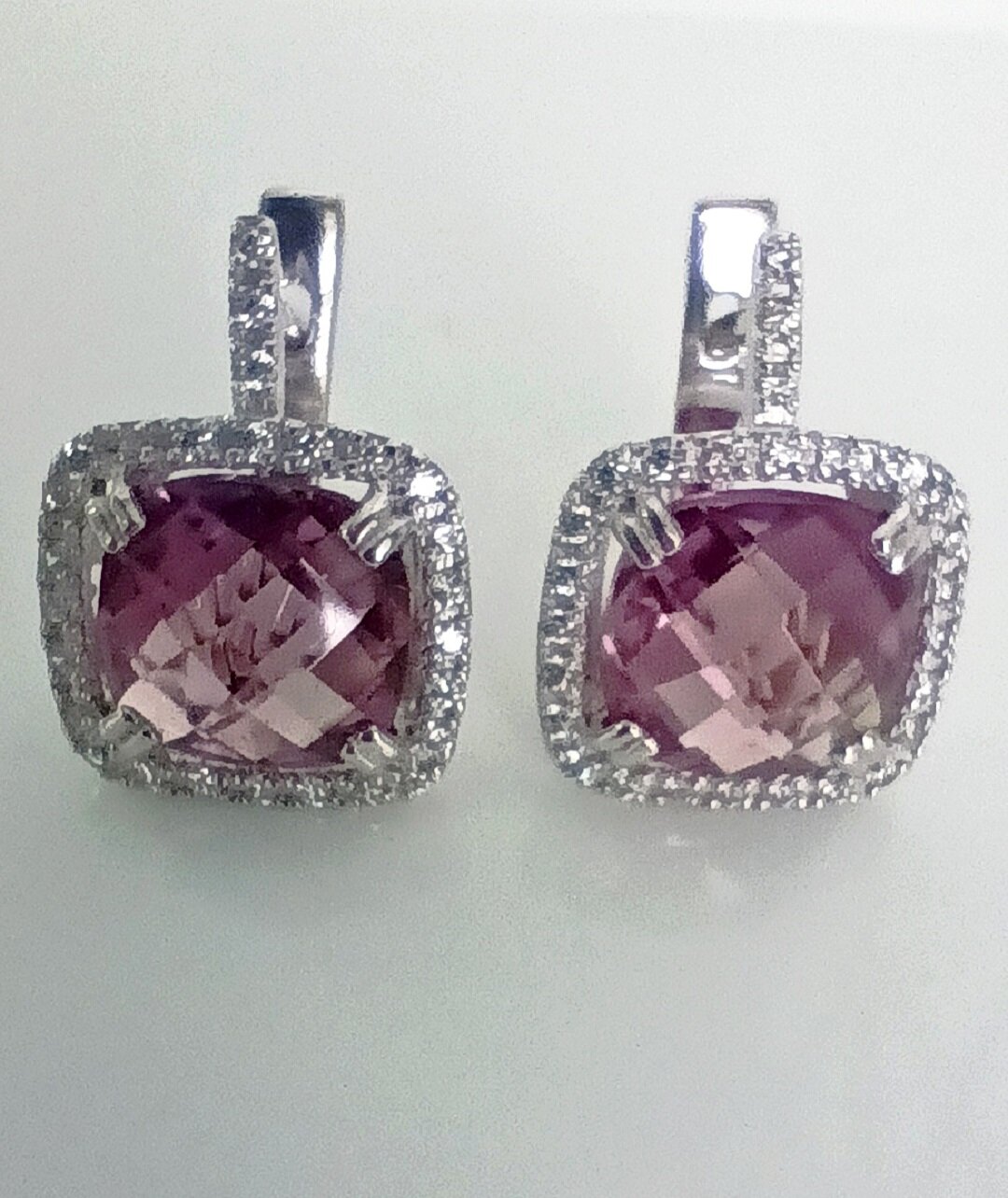 Серьги украшены выращенным александритом и фианитом, что придает им особый шарм и изысканность. Александрит - это синтетический камень, который обладает уникальной способностью менять свой цвет в зависимости от освещения. Фианит - это блестящий и прочный камень, который добавляет изделию блеска и сияния.
