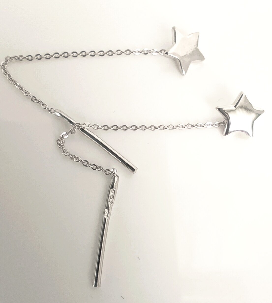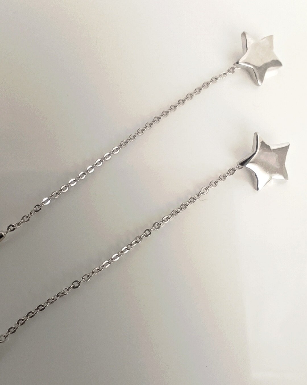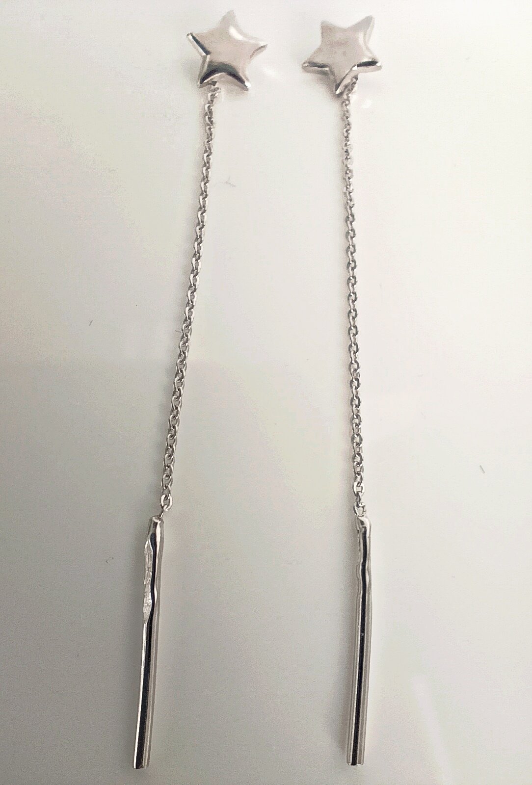 Серьги выполнены в виде продевок, что обеспечивает легкость и комфорт при носке. Размер украшения составляет 5.5 см, что делает их заметными, но не вызывающими.
