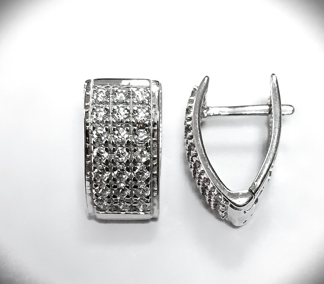 Серьги выполнены в современном стиле и сочетаются с любой одеждой, что позволяет носить их как на работу, так и на светские мероприятия.