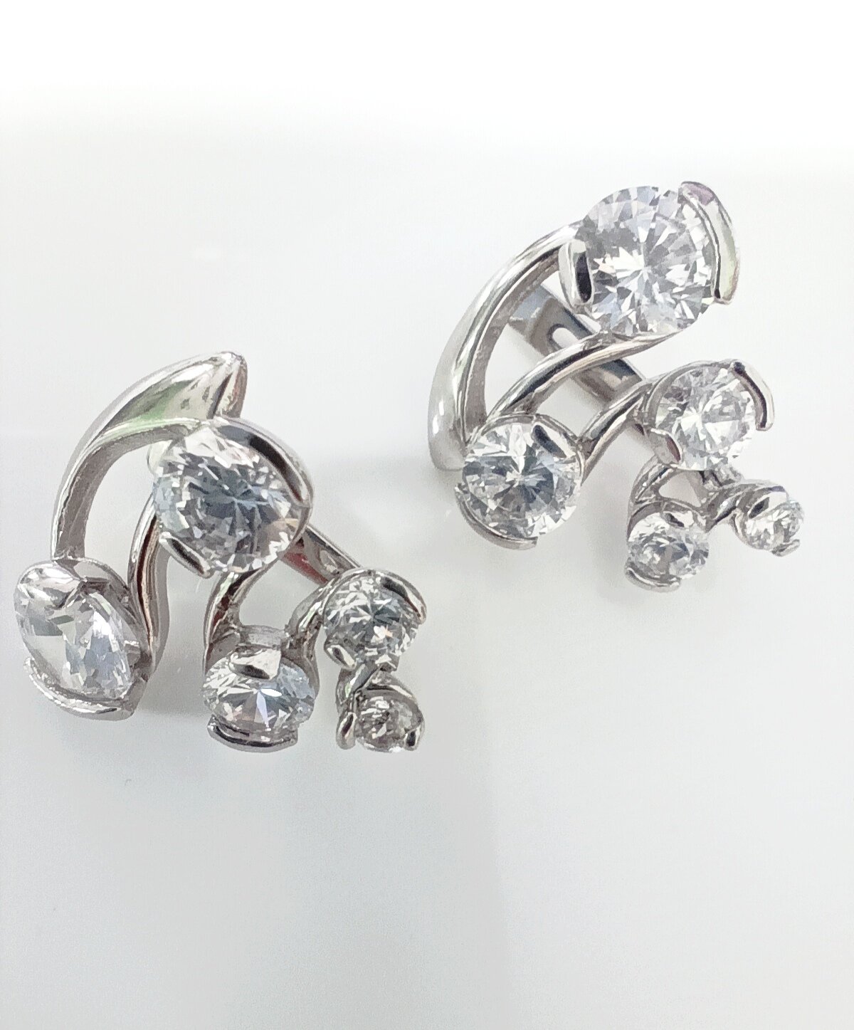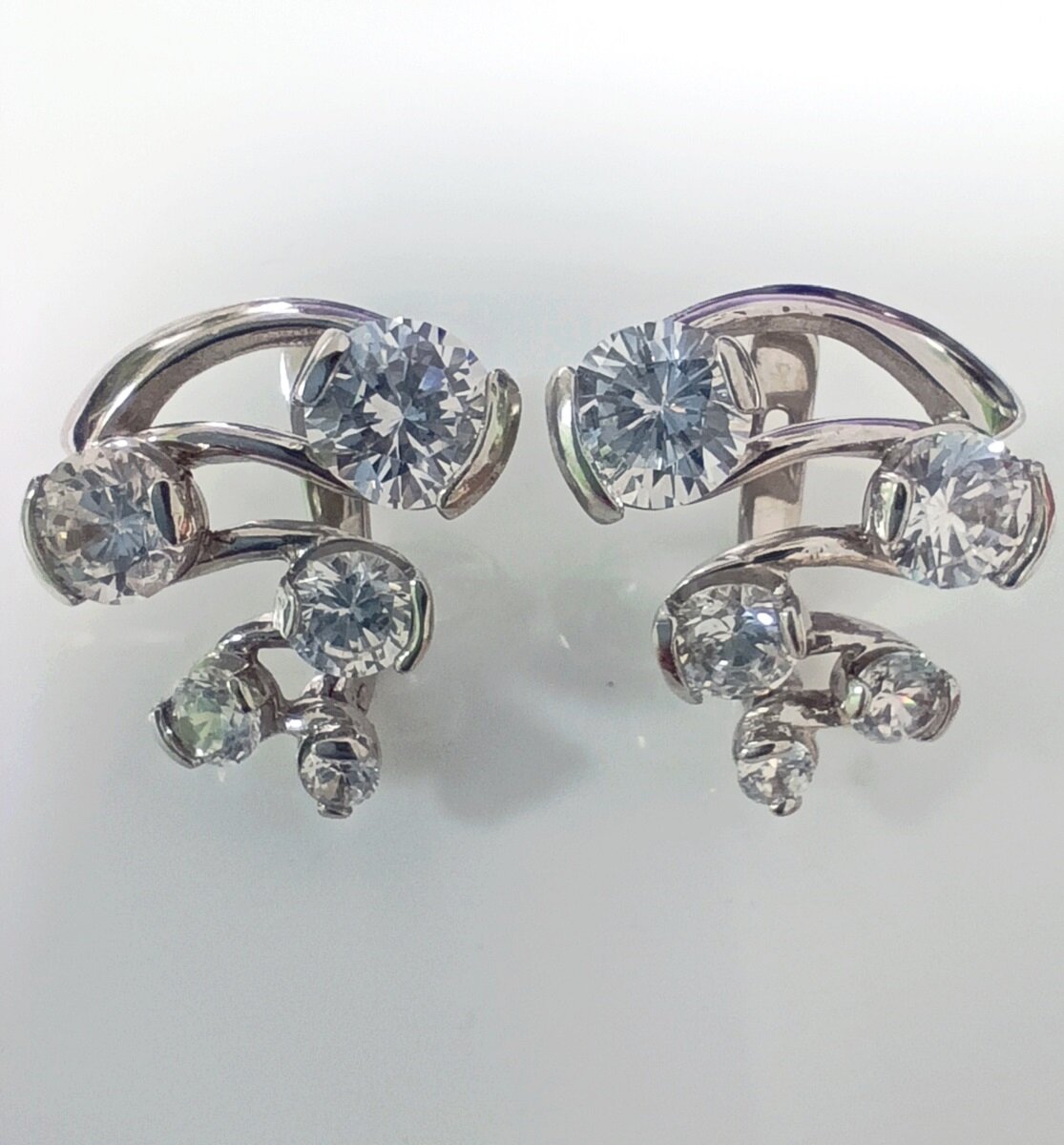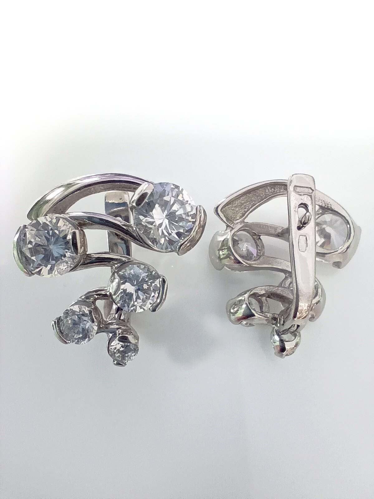 Серьги выполнены в коллекции "Зигзаги" и украшены фианитами белого цвета. Фианит - это искусственный аналог бриллианта, который по своему внешнему виду не уступает драгоценному камню. Он прозрачен, чист и играет на солнце, создавая настоящие ювелирные шедевры.