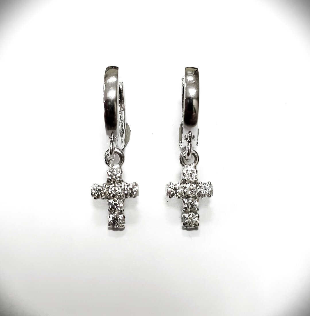 Серьги Эстерелла представляют собой мини серьги кресты с фианитами из серебра 925 пробы. Они покрыты гипоаллергенным покрытием родием, что делает их безопасными для ношения даже на чувствительной коже.