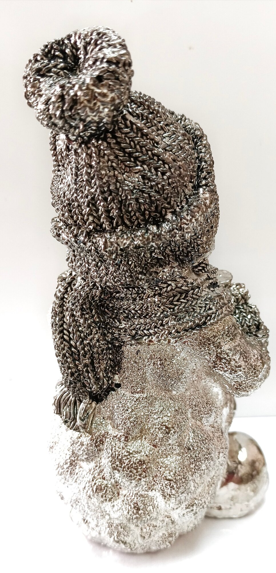 "Снеговик" выполнен из металла, что гарантирует его прочность и долговечность. Благодаря посеребренному напылению, статуэтка имеет теплый оттенок и выглядит очень стильно.