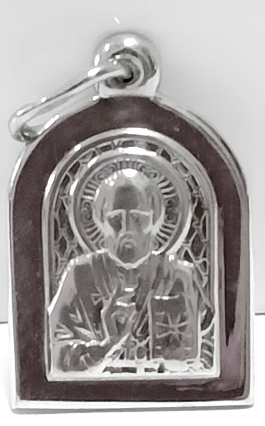 Подвеска выполнена в виде иконки Николая Чудотворца, славянского оберега, который символизирует защиту и покровительство.