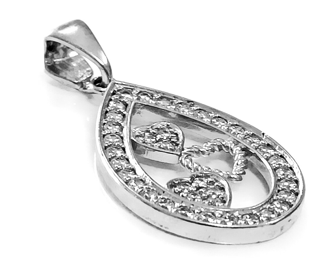 Подвеска украшена фианитами, которые придают изделию блеск и сияние. Фианиты – это искусственные камни, которые по своим оптическим свойствам не уступают бриллиантам, но при этом имеют более доступную цену.