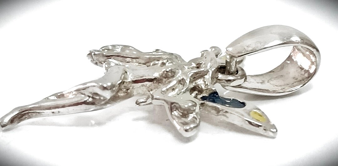 Подвеска выполнена из серебра 925 пробы, что гарантирует высокое качество и долговечность изделия. Средний вес подвески составляет 4.04 грамма, что делает ее легкой и комфортной для ношения.
