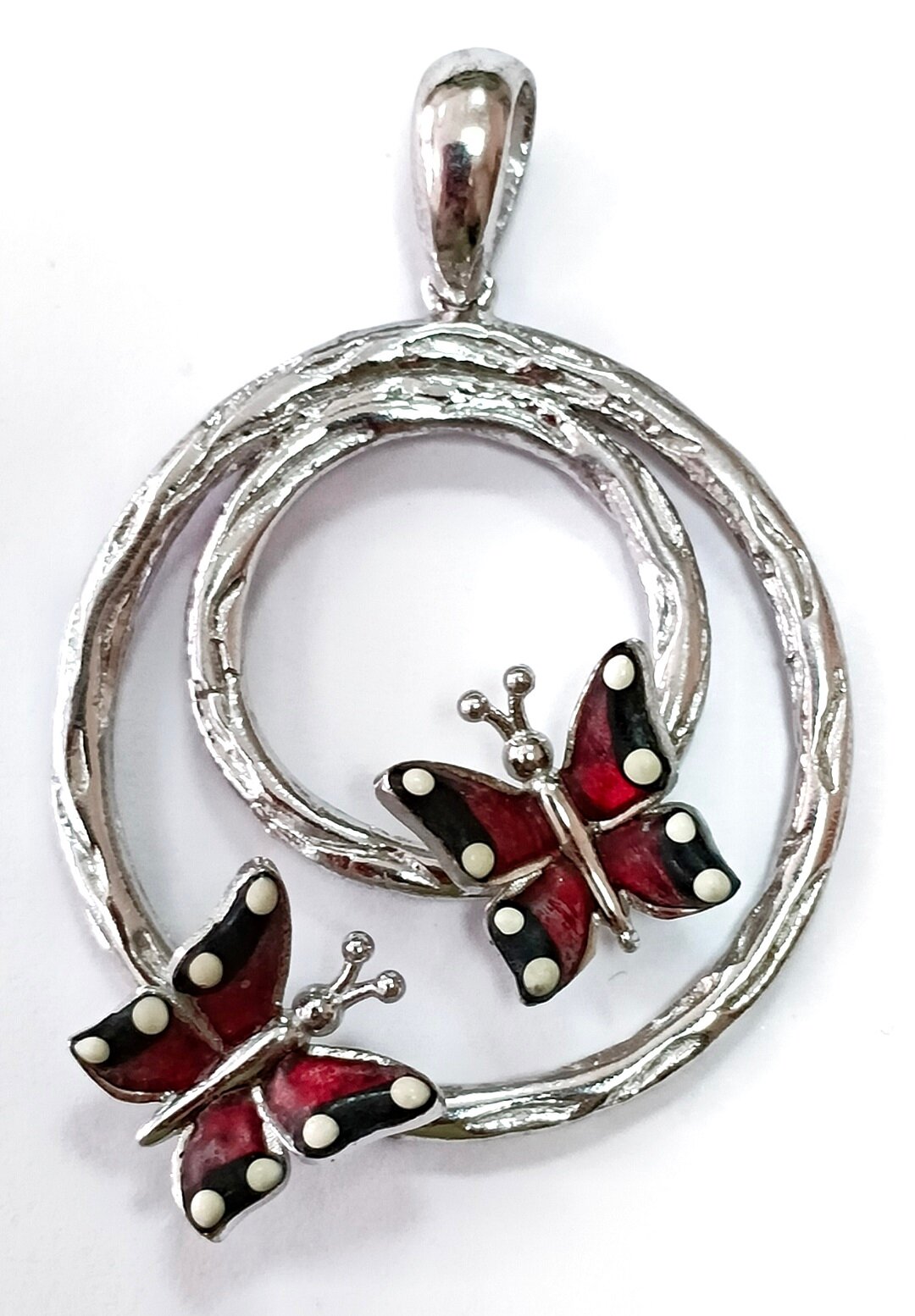 Дизайн подвески выполнен в тематике бабочек, что придает ей неповторимый и оригинальный вид. Эмалевая вставка добавляет изысканности и блеска, делая украшение еще более привлекательным.