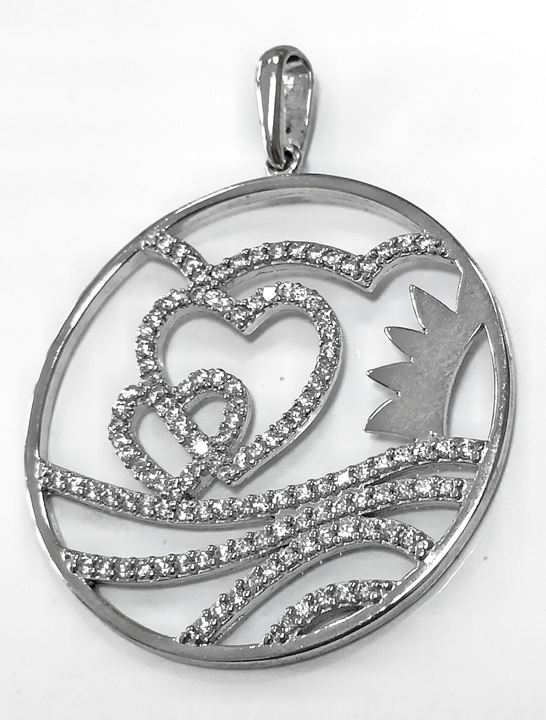 Подвеска украшена фианитами, которые придают изделию особый шарм и блеск.