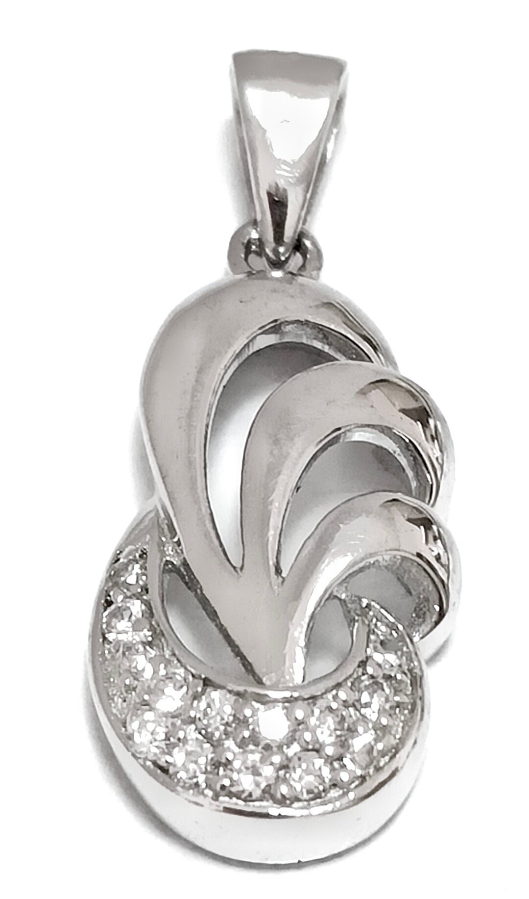 Украшение выполнено в виде кулона с фианитовой вставкой, что придает ему особый блеск и сияние. Размер подвески составляет 3,0 см, что делает ее заметной, но в то же время не громоздкой.