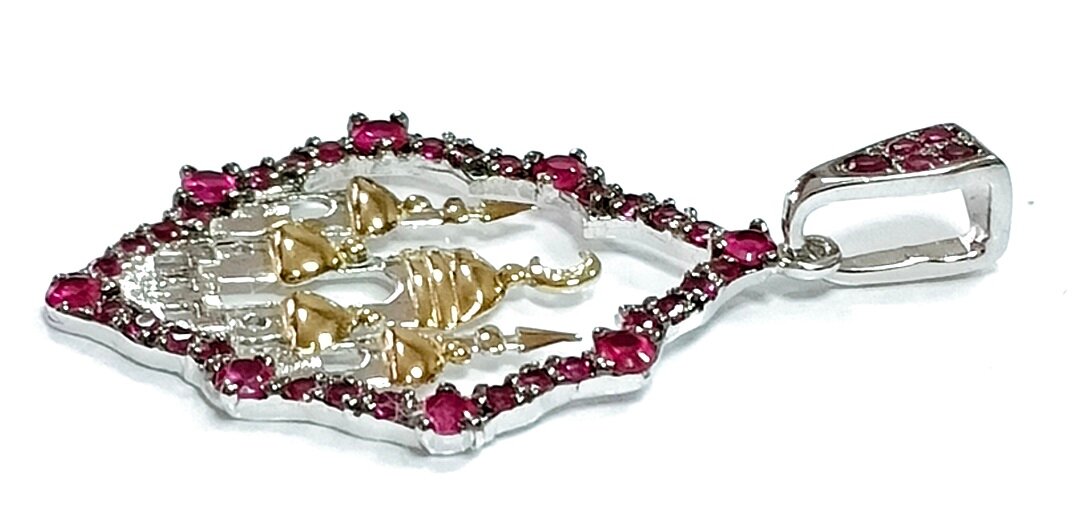 Вставка из синтетического рубина придает украшению особый шарм и блеск. Рубин является символом любви, страсти и богатства, что делает подвеску еще более привлекательной.