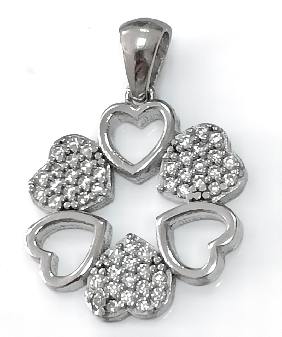 Подвеска украшена родированием, что придает ей блеск и защищает от царапин и потертостей.