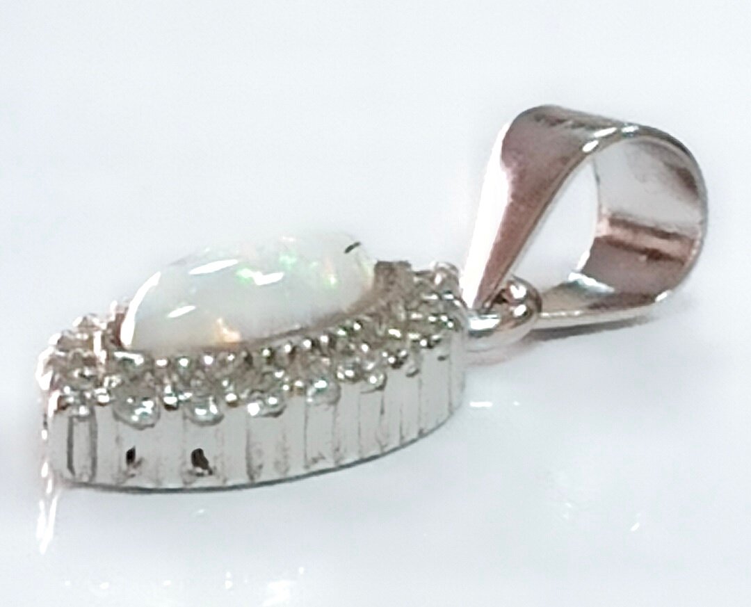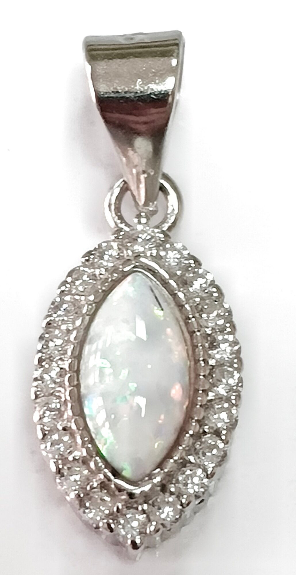 Вставка из синтетического опала в форме капли придает украшению особый шарм и изысканность. Фианит в качестве дополнительного камня добавляет блеск и сияние, делая подвеску еще более привлекательной.