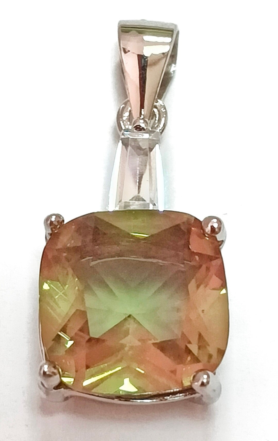 Вставка из султанита и фианита придает подвеске особый шарм. Султанит - это полудрагоценный камень, который обладает уникальной игрой света и создает неповторимый образ.