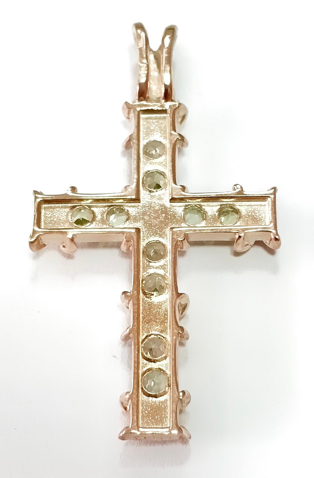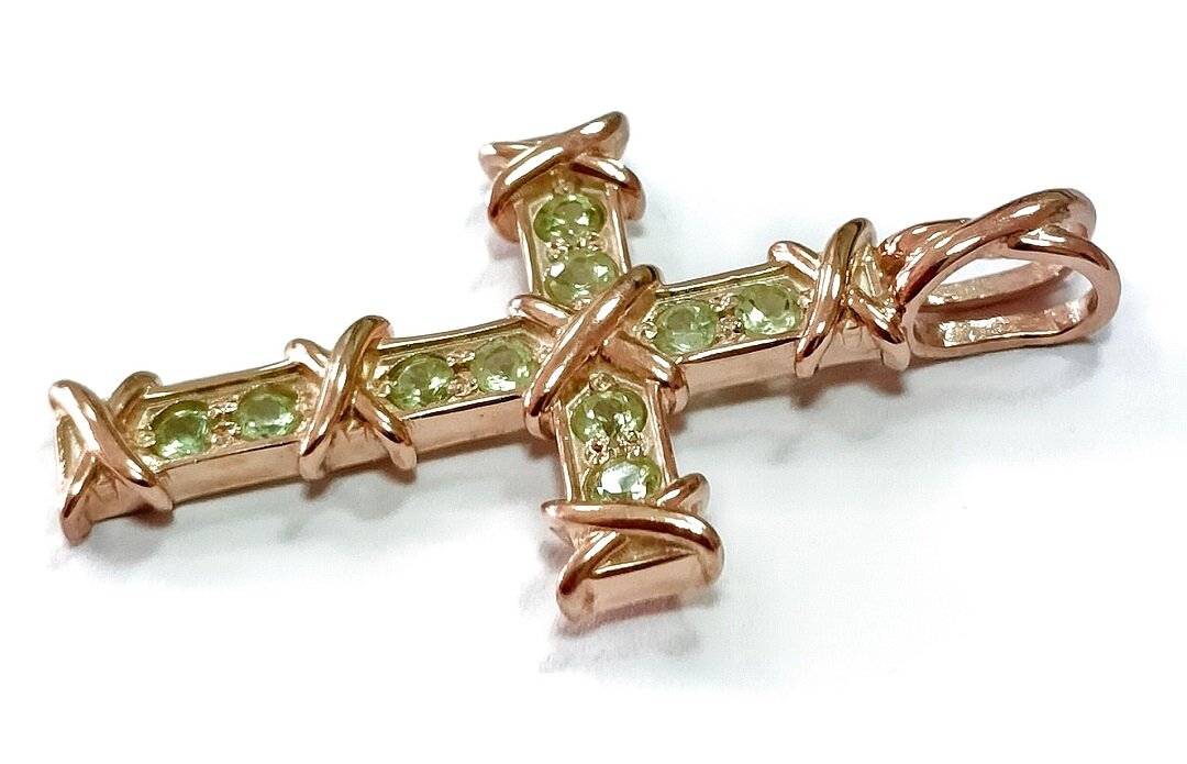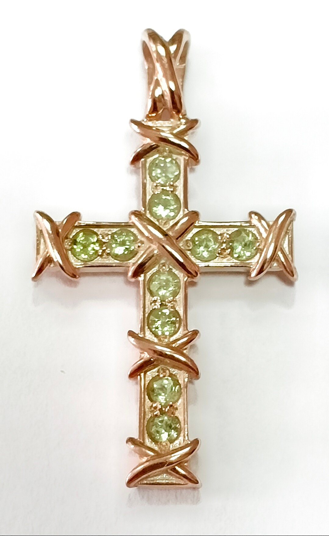 Ювелирная подвеска-крест из серебра с позолотой и хризолитами