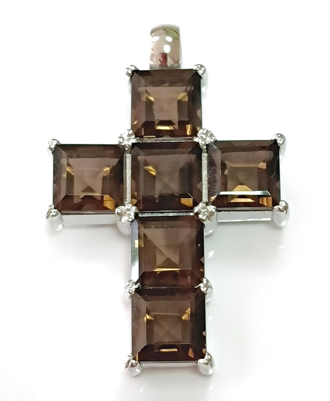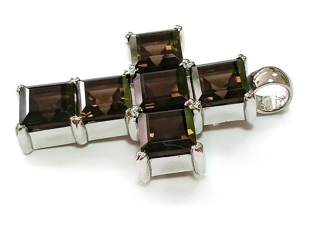 Ювелирная подвеска-крест из серебра с раух-топазом - стильное и элегантное украшение, которое станет прекрасным дополнением к вашему образу.