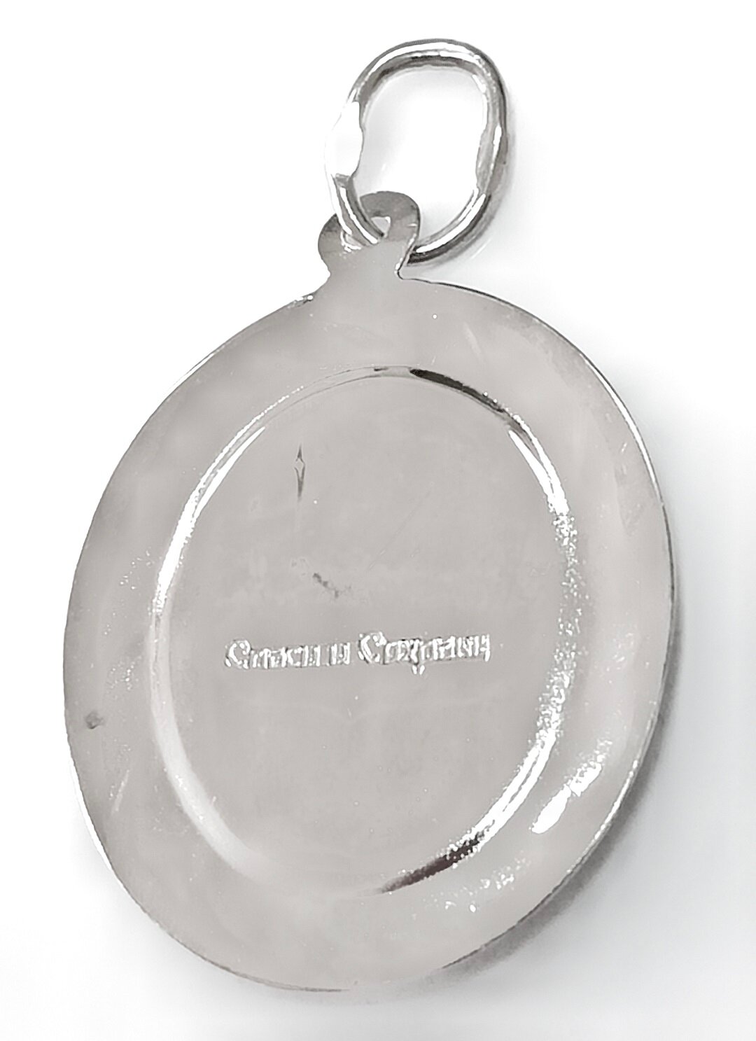 Украшение имеет православную тематику и выполнено в виде иконки с надписью "Спаси и сохрани". Размер подвески составляет 3.5 см в высоту и 2.3 см в ширину.