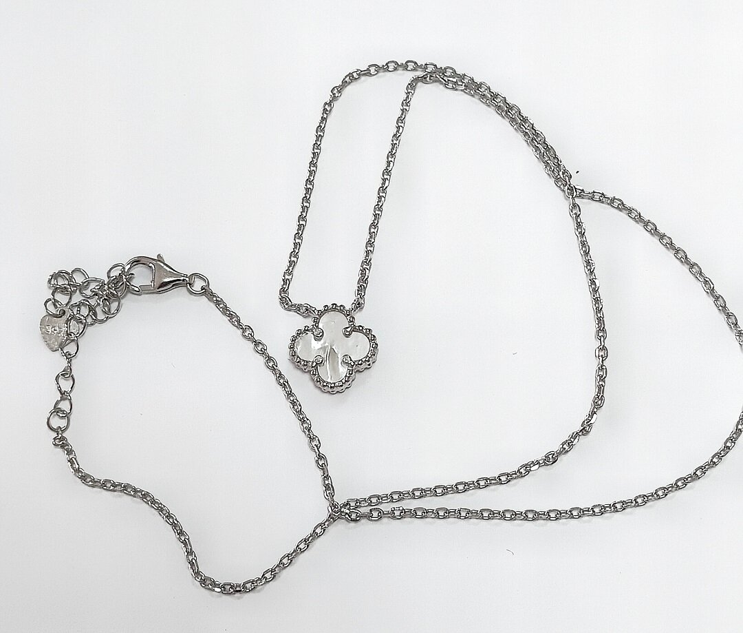 Вставка из белого перламутра придает украшению нежность и утонченность. Белый перламутр - это символ чистоты и невинности, что делает колье еще более привлекательным.