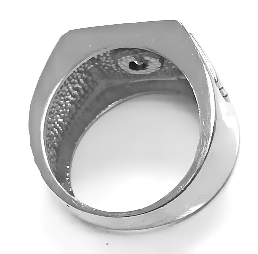 Кольцо выполнено в виде печатки, что придает ему особый шарм и статусность.