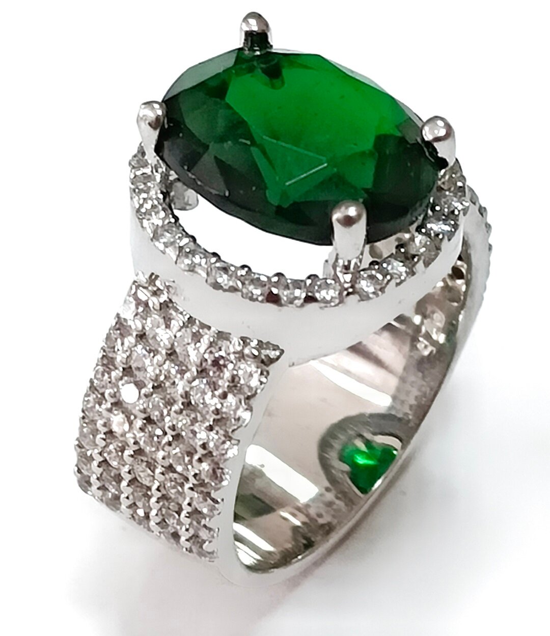 Отделка кольца родированием придает ему дополнительную защиту от царапин и потертостей, а также усиливает блеск металла.