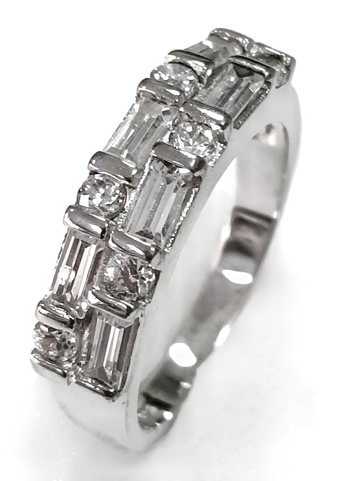 Вставка из фианита придает украшению блеск и сияние. Форма вставки - багет и круг, что создает уникальный и привлекательный дизайн.