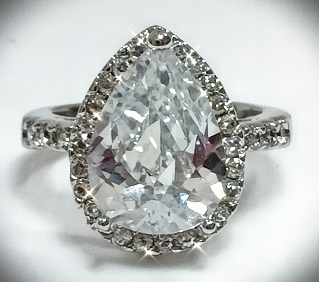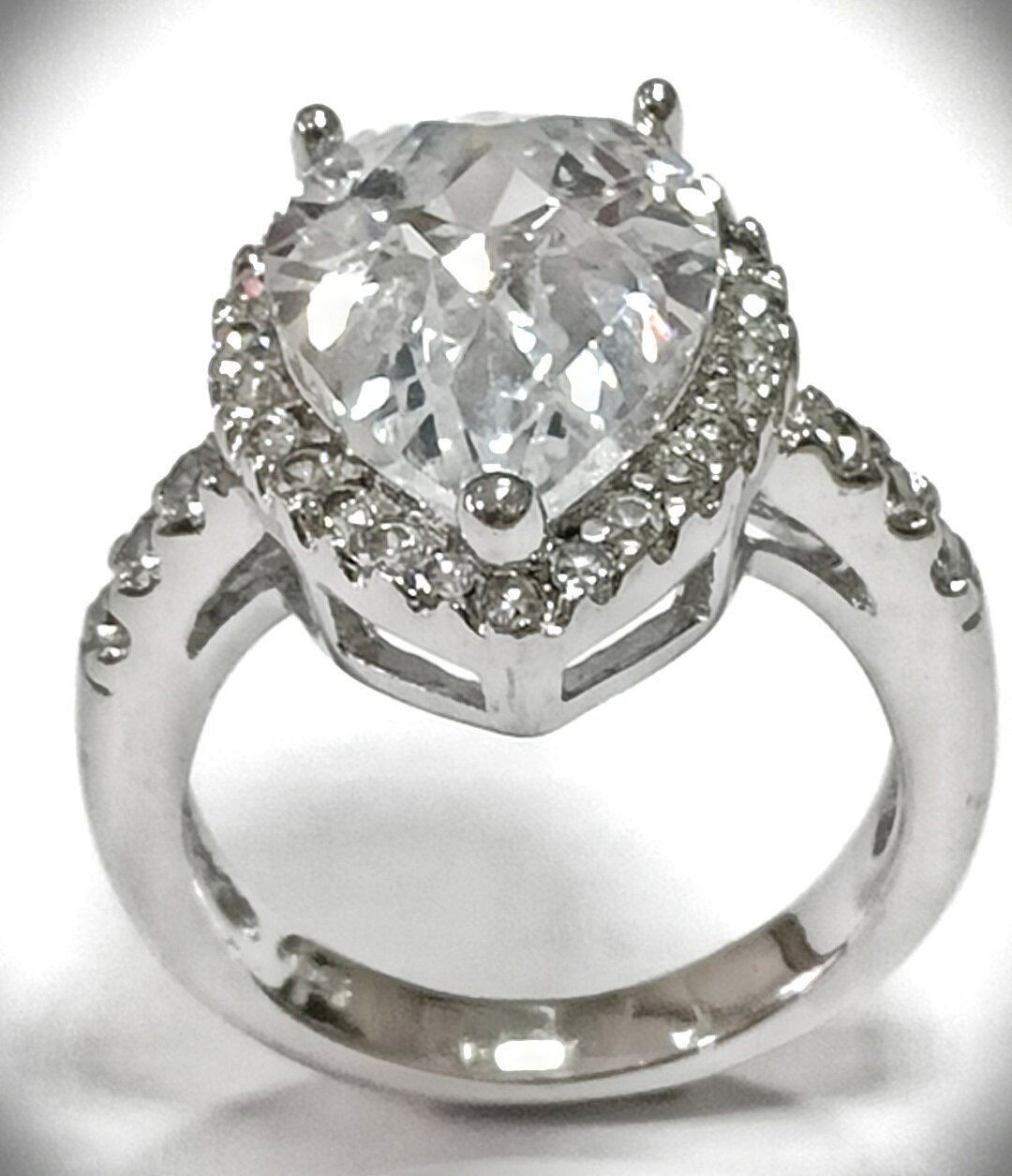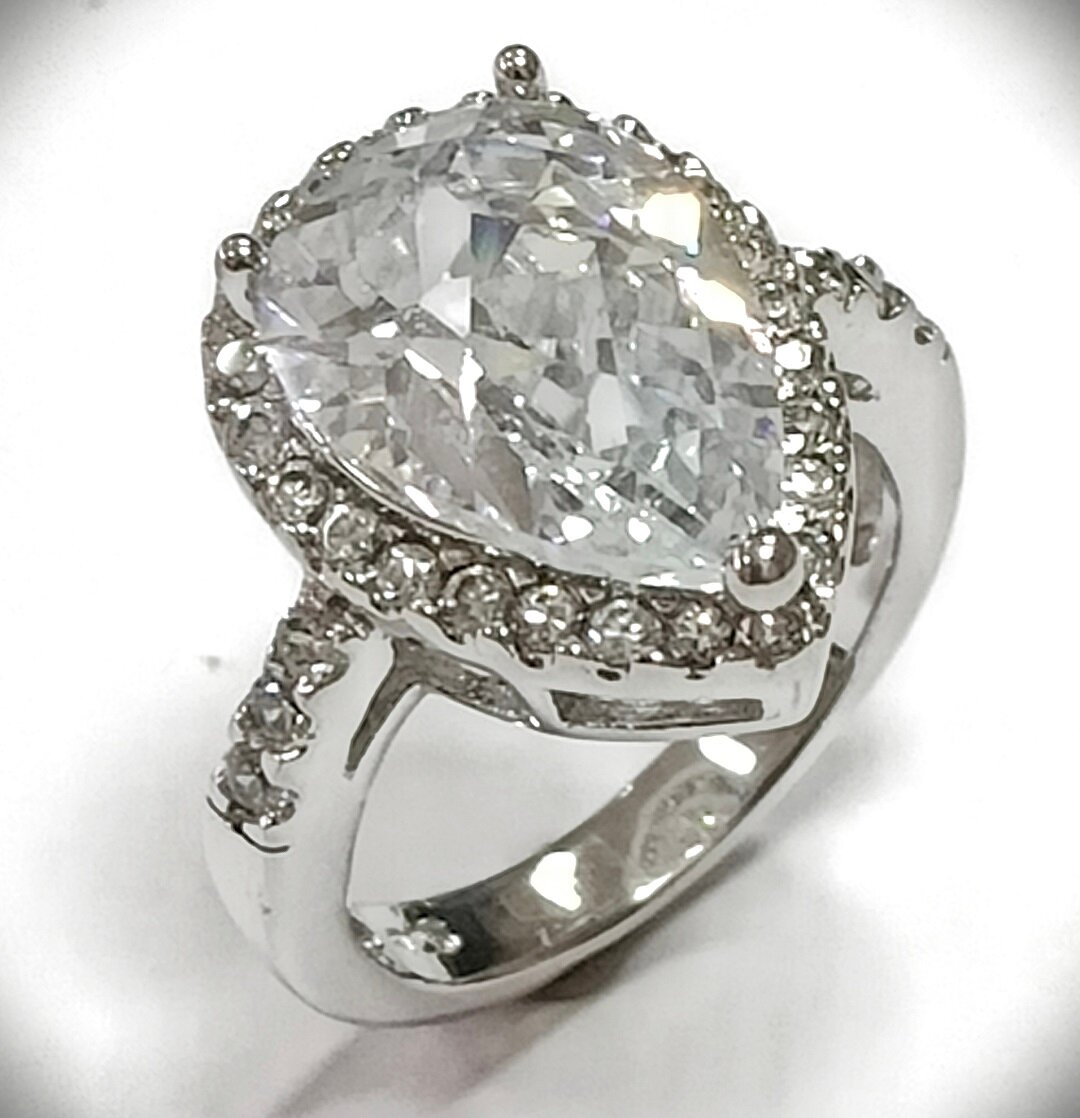 Кольцо выполнено в форме капли, что придает ему особый шарм и элегантность. Вставка из фианита, выполненная в форме капли, добавляет изделию блеска и сияния.