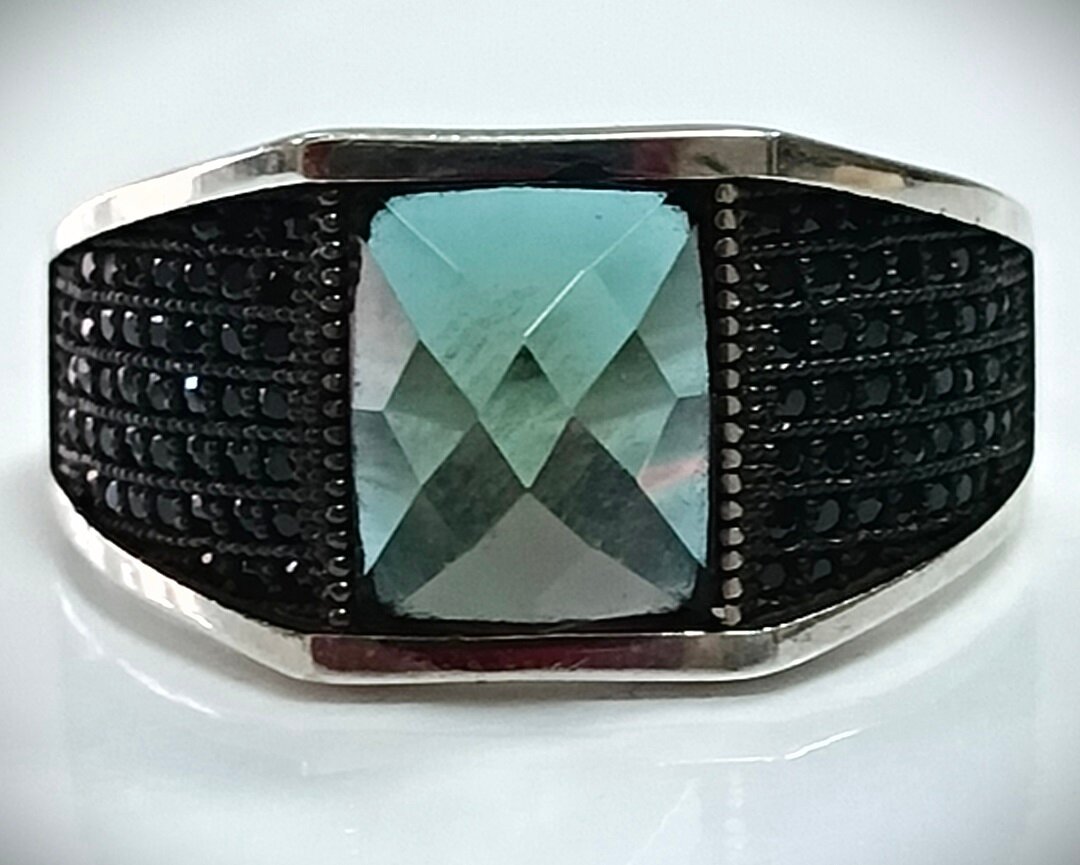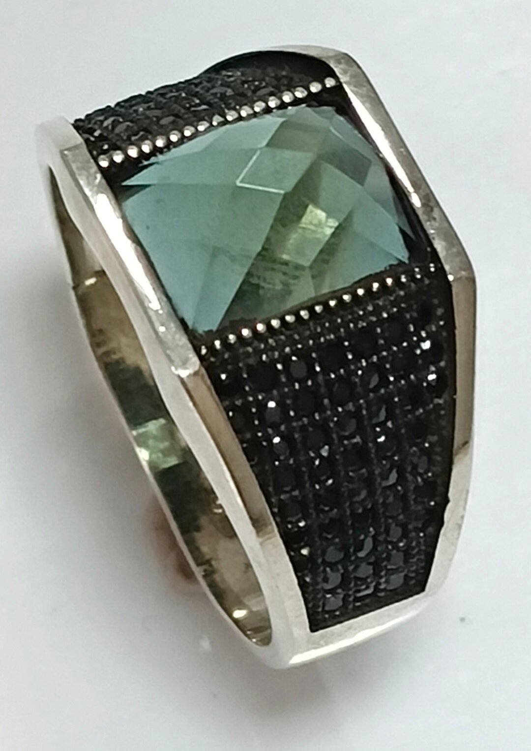 Вставка из черного фианита и султанита придает кольцу особый шарм и блеск. Квадратная форма вставки подчеркивает геометрию кольца и делает его еще более привлекательным.